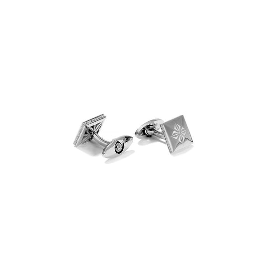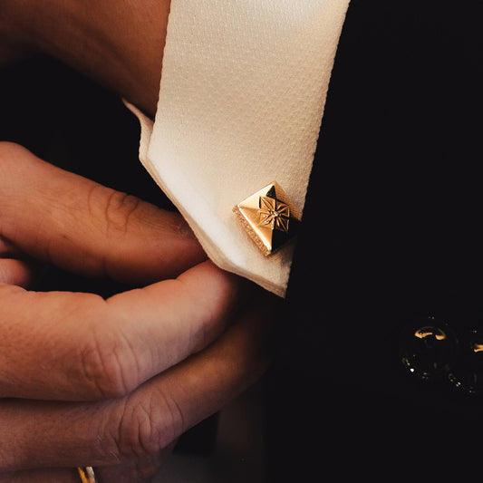 From the moment we ethically source our diamonds to the final touch of our master craftsmen, the journey of creating each of our cufflinks is a testament to uncompromising quality and artistry. Selected for their radiant brilliance, our diamonds are meticulously hand-set onto our cufflinks crafted from 18K gold by skilled jewelry craftsmen, melding the lustrous sheen of precious metal with the sparkling allure of nature's finest gemstones. The result is radiant cufflinks, shimmering with every facet and gleam.