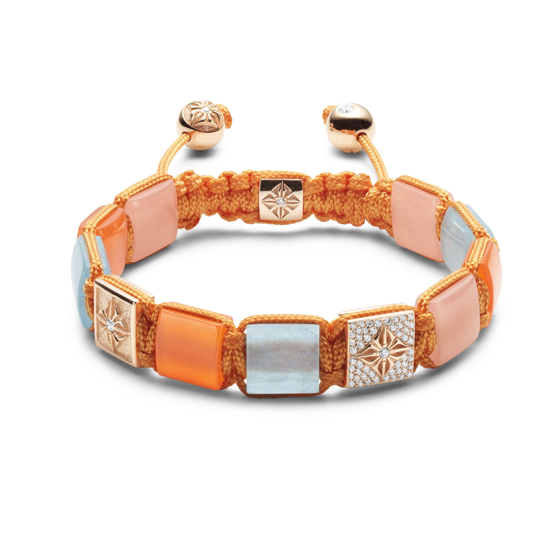 G/Vs Diamonds, Aquamarines, Guava Quartzes, Carnelians, 18K Rose Gold.