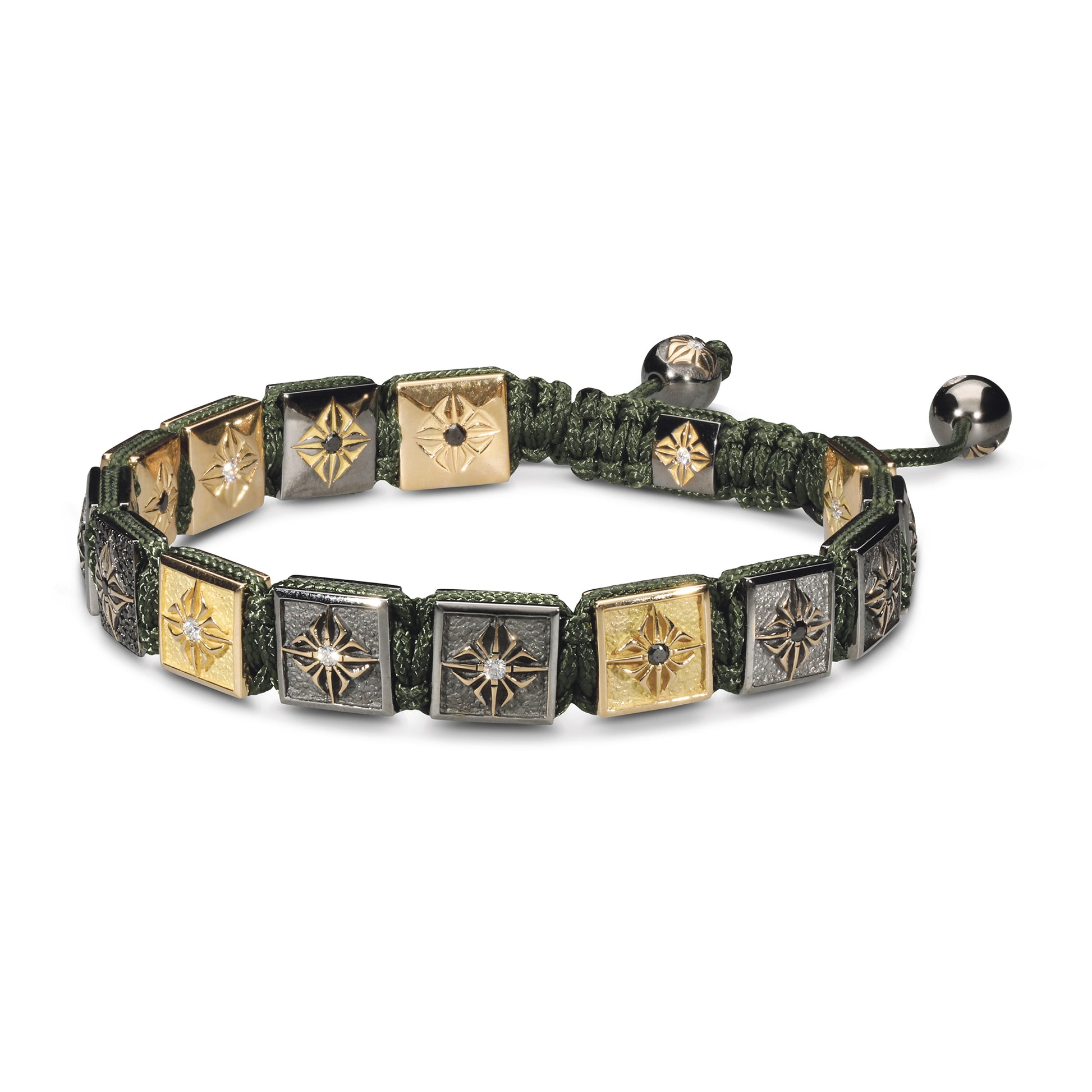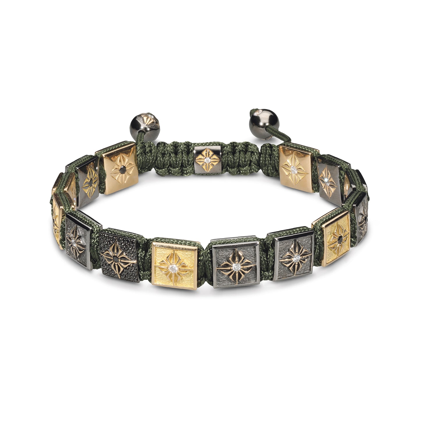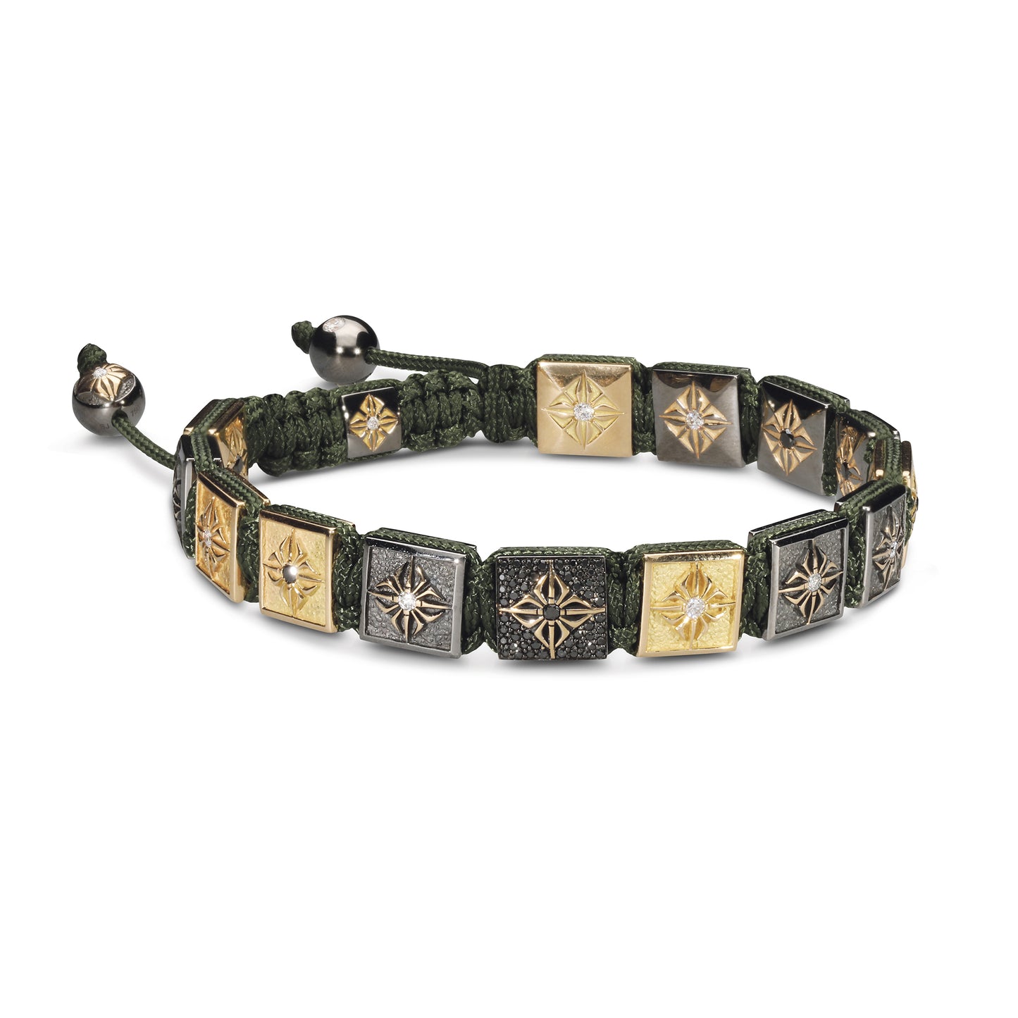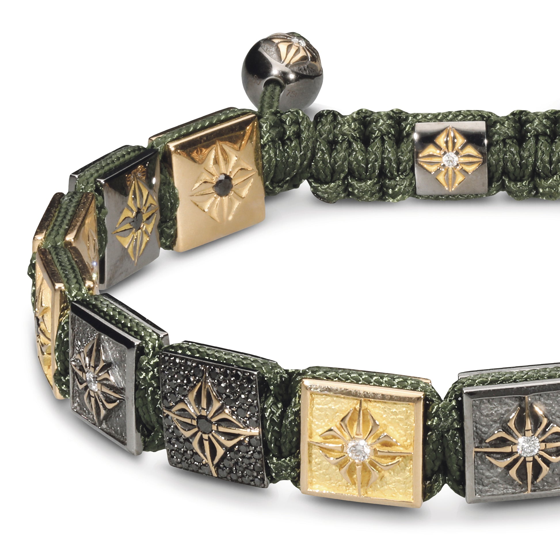 Olive String: This bracelet is expertly finished with an olive string, which not only ensures a comfortable and secure fit but also complements the gold and diamond tones, tying the piece together with a subtle nod to natural elegance.