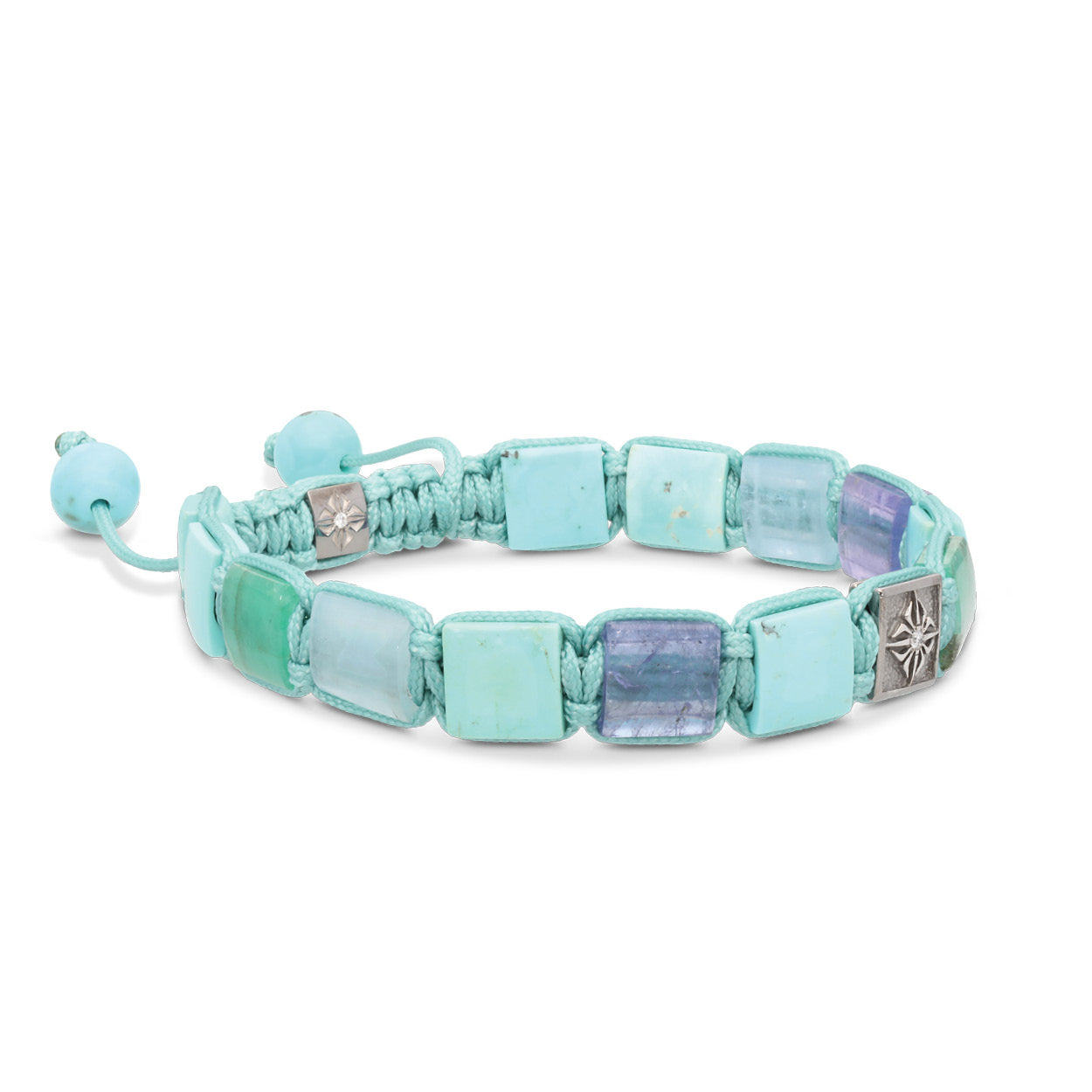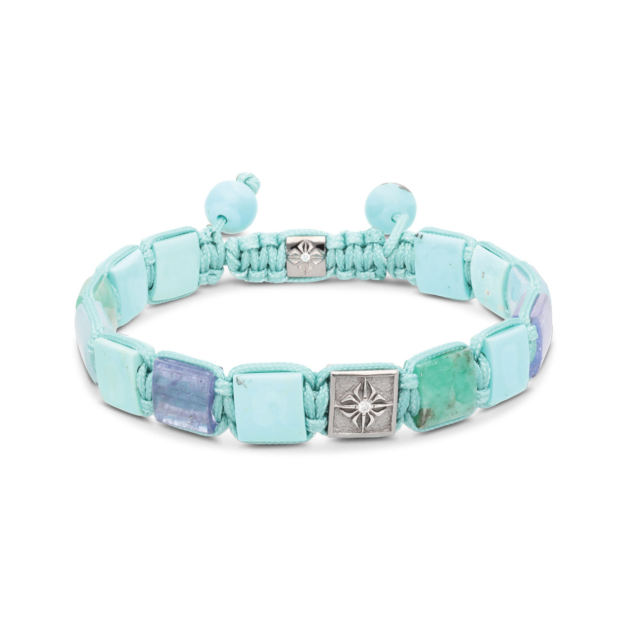 Turquoise String – The carefully woven turquoise string complements the vibrant gemstones, adding both comfort and an extra layer of elegance to the bracelet.