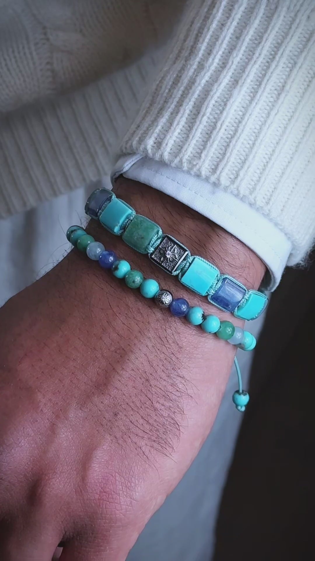 Turquoise String – The carefully woven turquoise string complements the vibrant gemstones, adding both comfort and an extra layer of elegance to the bracelet.