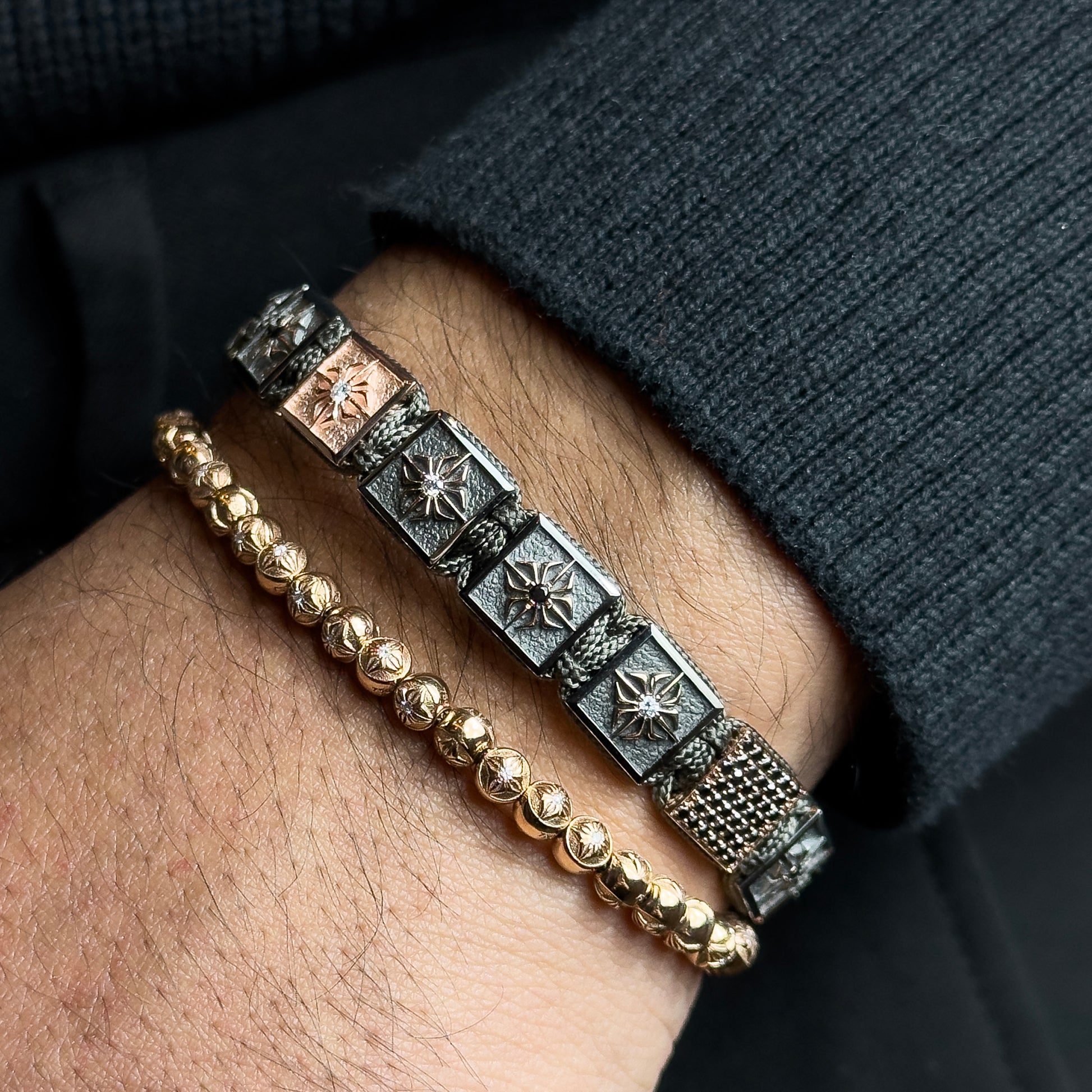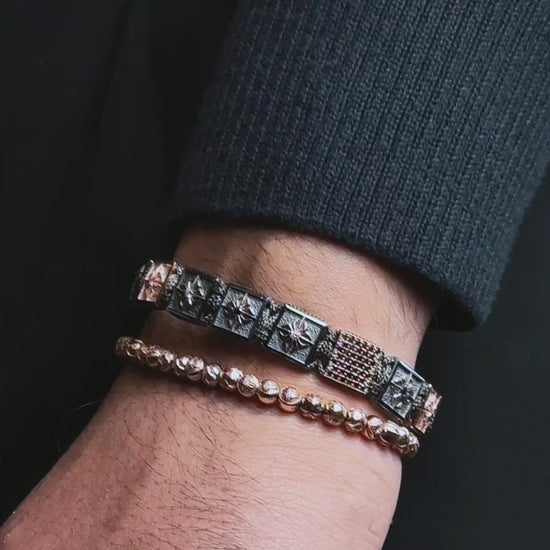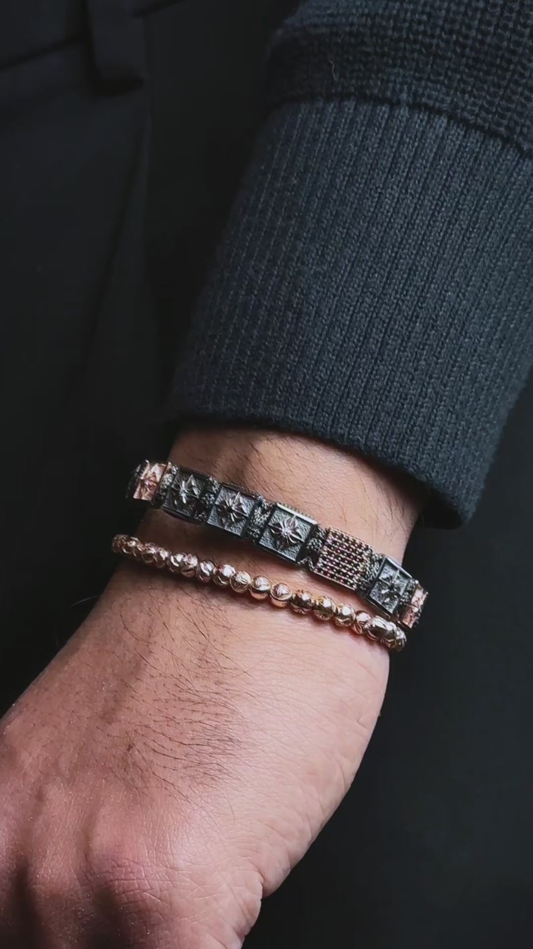 18K Rose & Black Rhodium Plated Rose Gold – A luxurious combination of warm rose gold and black rhodium plating, enhancing the bracelet’s bold and refined aesthetic.