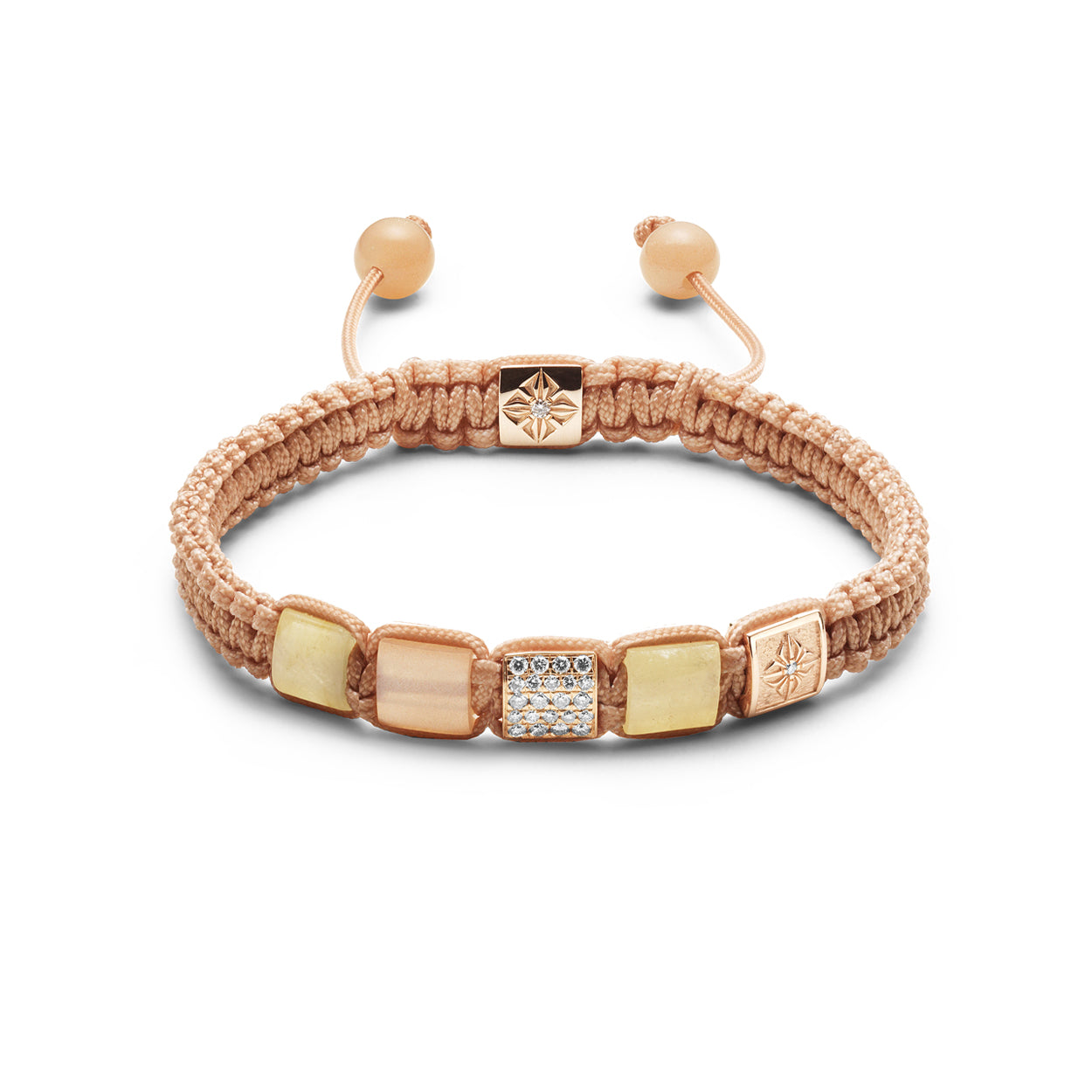 G/Vs Diamonds, 18K Rose Gold, Yellow Sapphires and Peach Moonstone.