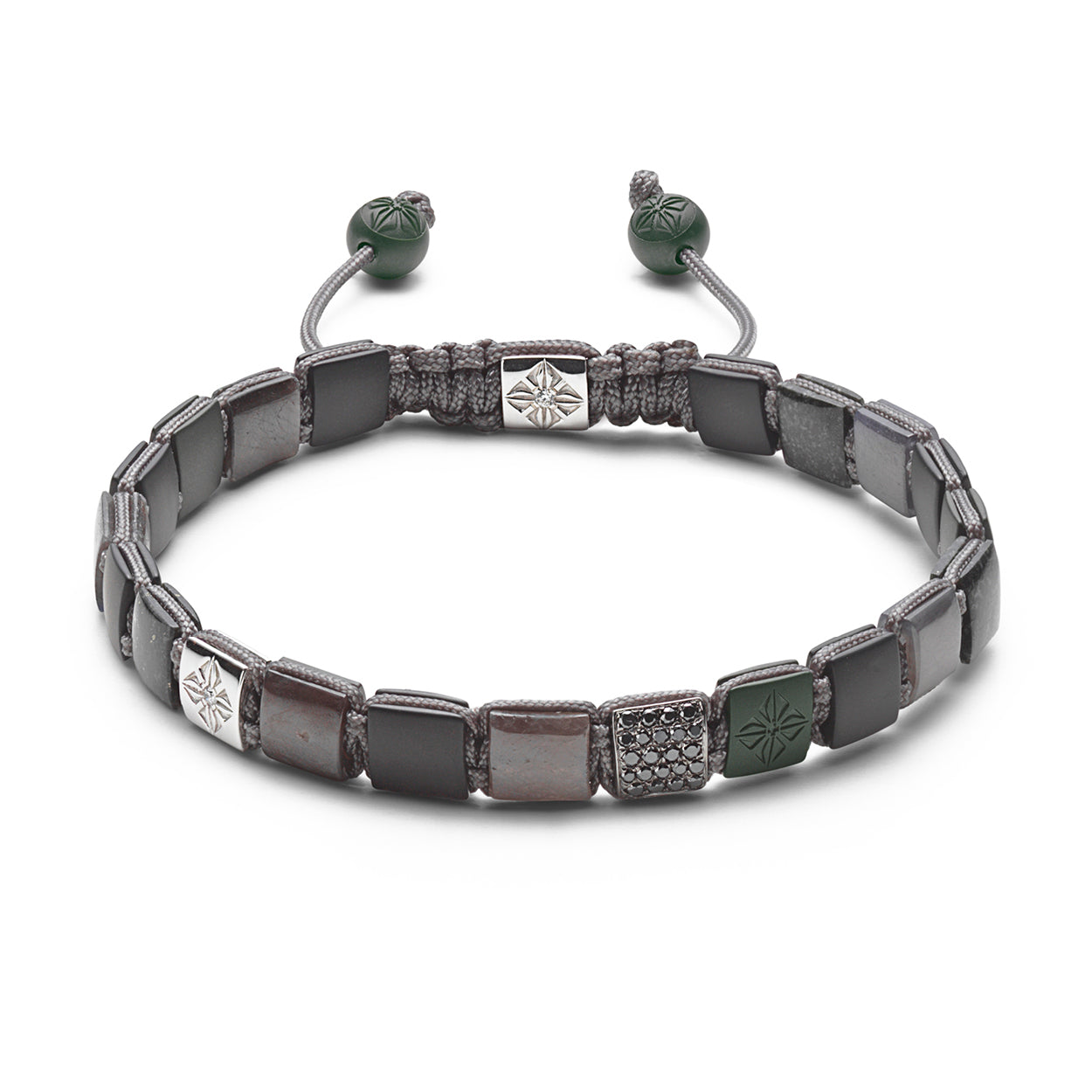 Stone Grey String: Finished with a stone grey string, the bracelet offers a refined backdrop that complements the intricate combination of diamonds, gemstones, ceramic, and gold. The string is meticulously woven for comfort and durability, ensuring a perfect fit and stylish look.