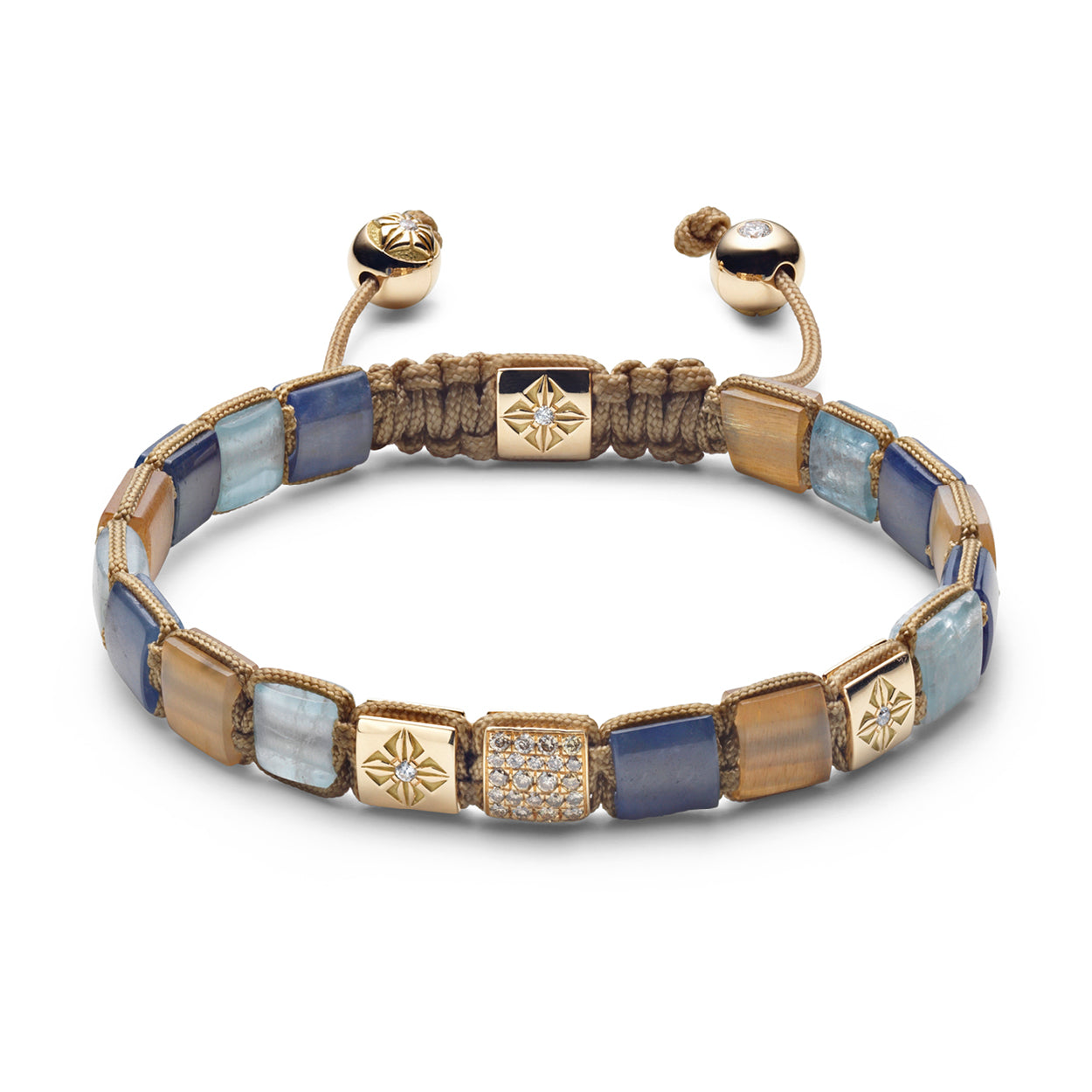 Brown & G/Vs Diamonds, Blue Sapphires, Milky Aquamarines, Light Brown Moonstones, 18K Yellow Gold.