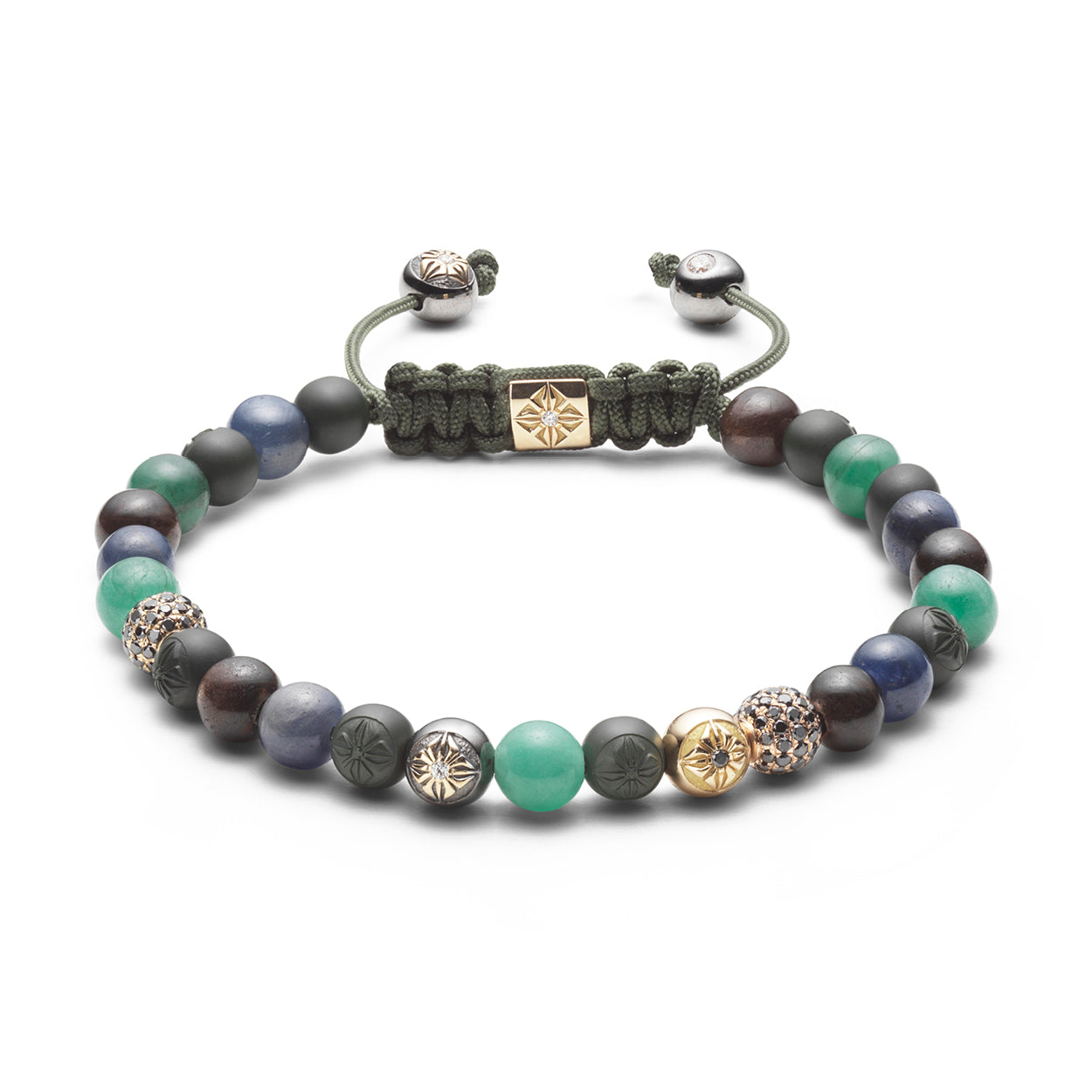 Discover the captivating 6mm Non-Braided Bracelet by Shamballa Jewels, a striking fusion of elegance and contemporary design. This stunning bracelet features a luxurious combination of G/VS and black diamonds, emeralds, blue and brown sapphires, beautifully accented by green matte ceramic, all set in a harmonious blend of 18K yellow and black rhodium plated yellow gold. The sleek non-braided design adds an element of sophistication, making it a versatile accessory for any occasion.