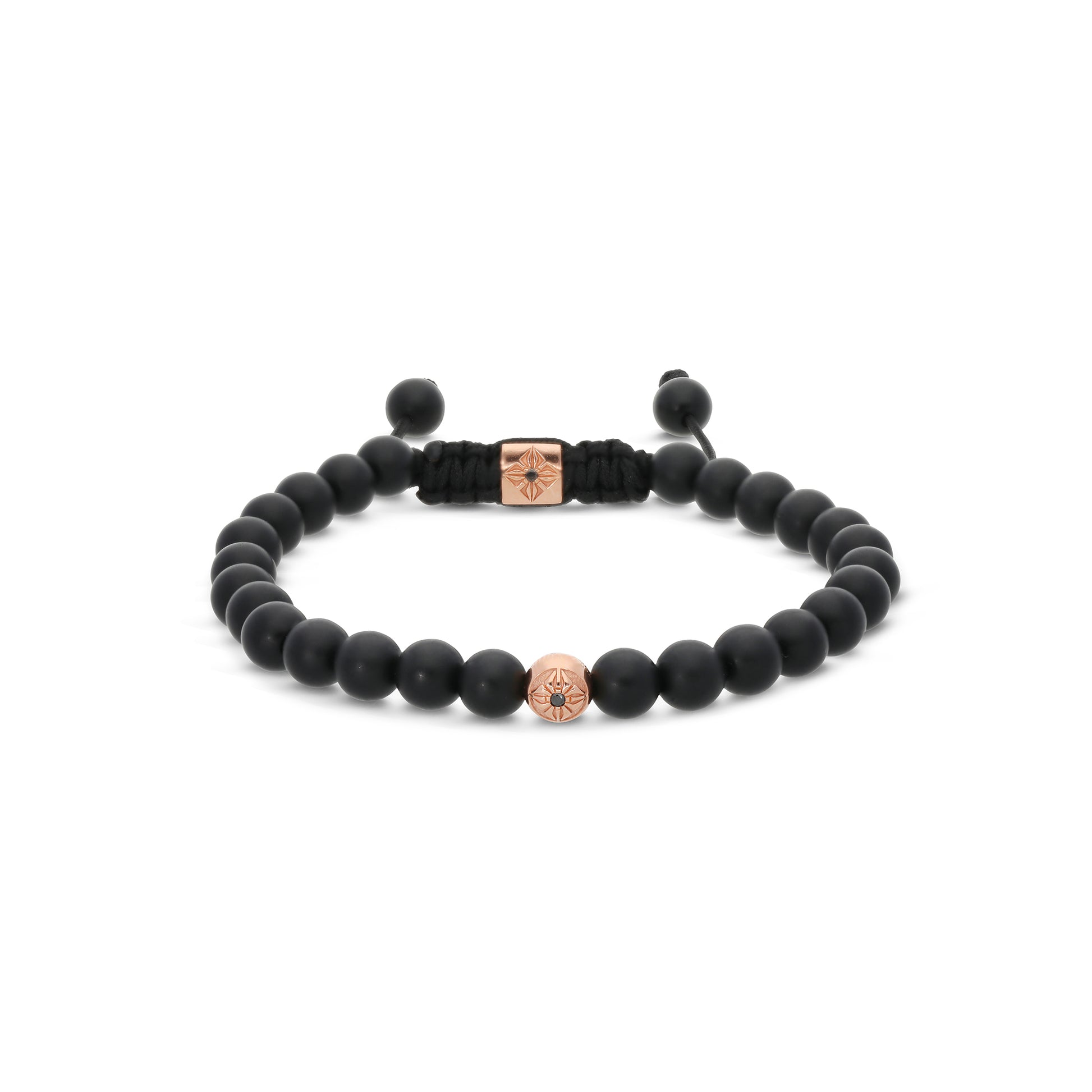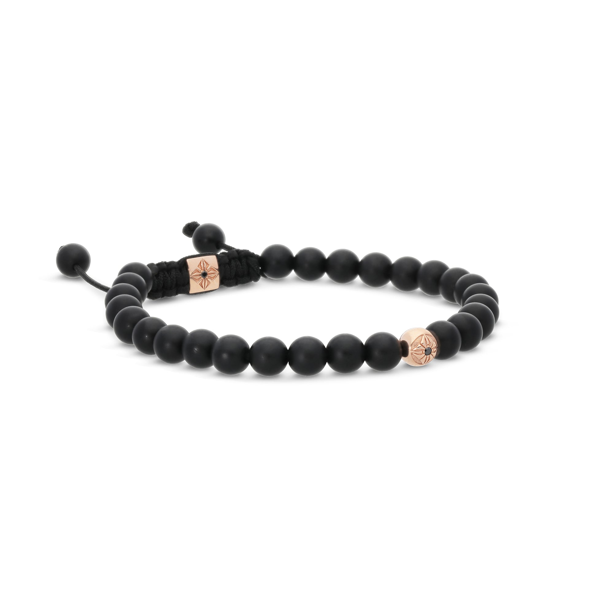 6mm SOS Beads in 18K Rose Gold with Black Diamonds: These signature beads are crafted in glowing 18K rose gold and adorned with dark, shimmering black diamonds—creating a luxurious fusion of warmth and mystery.