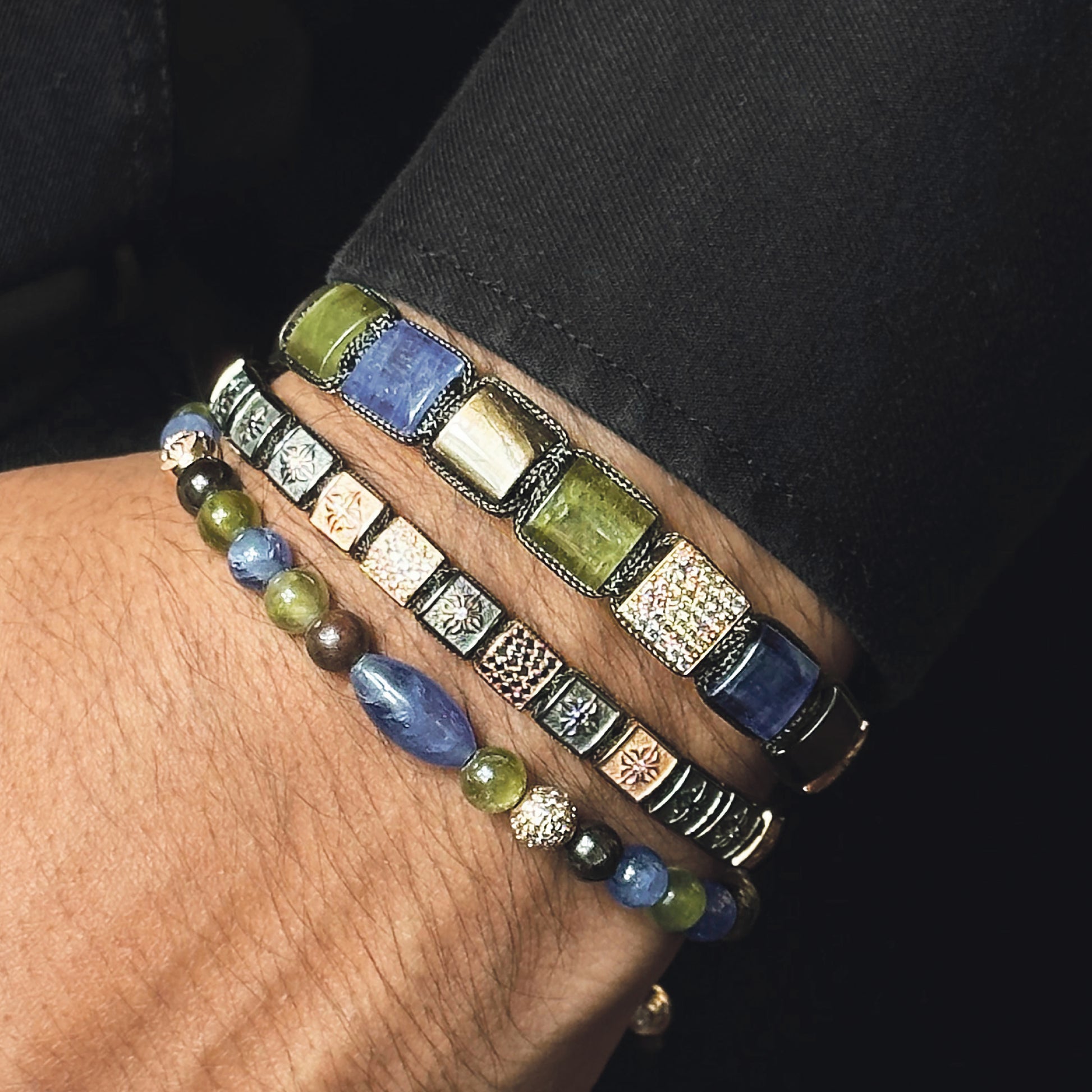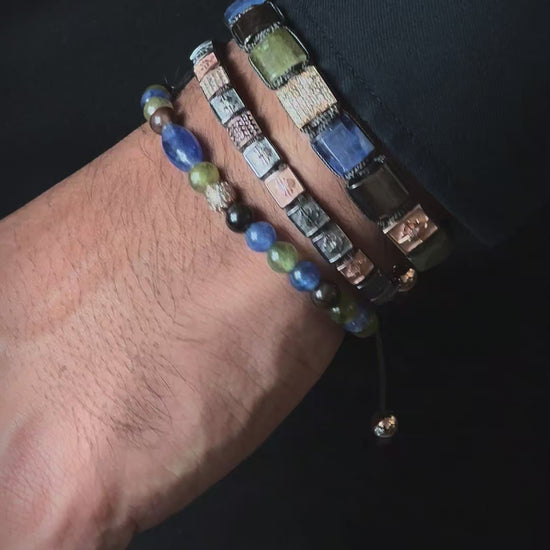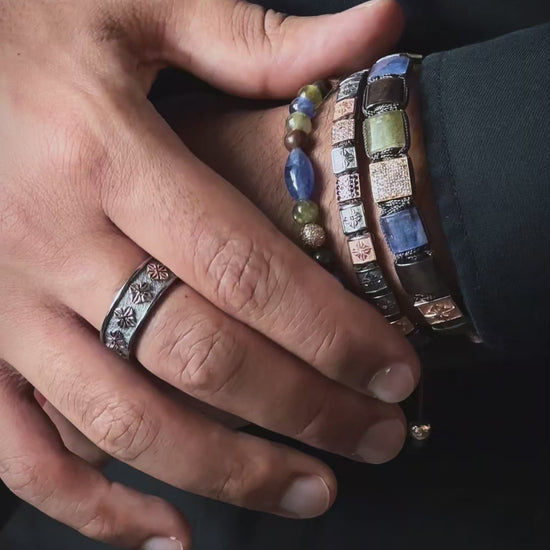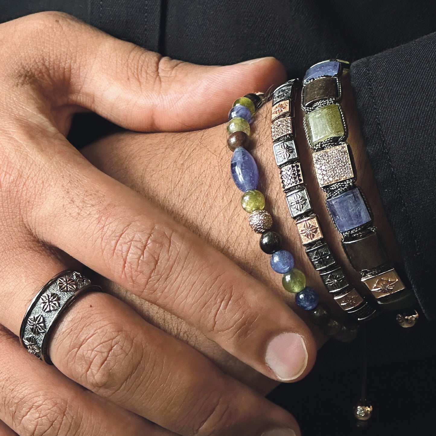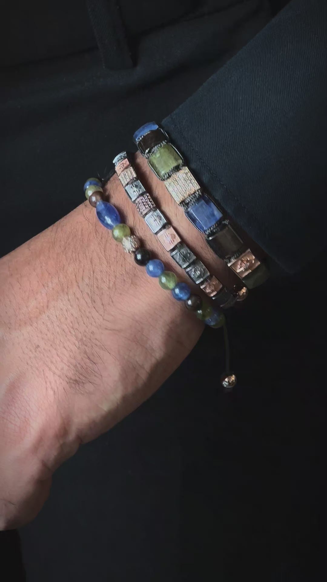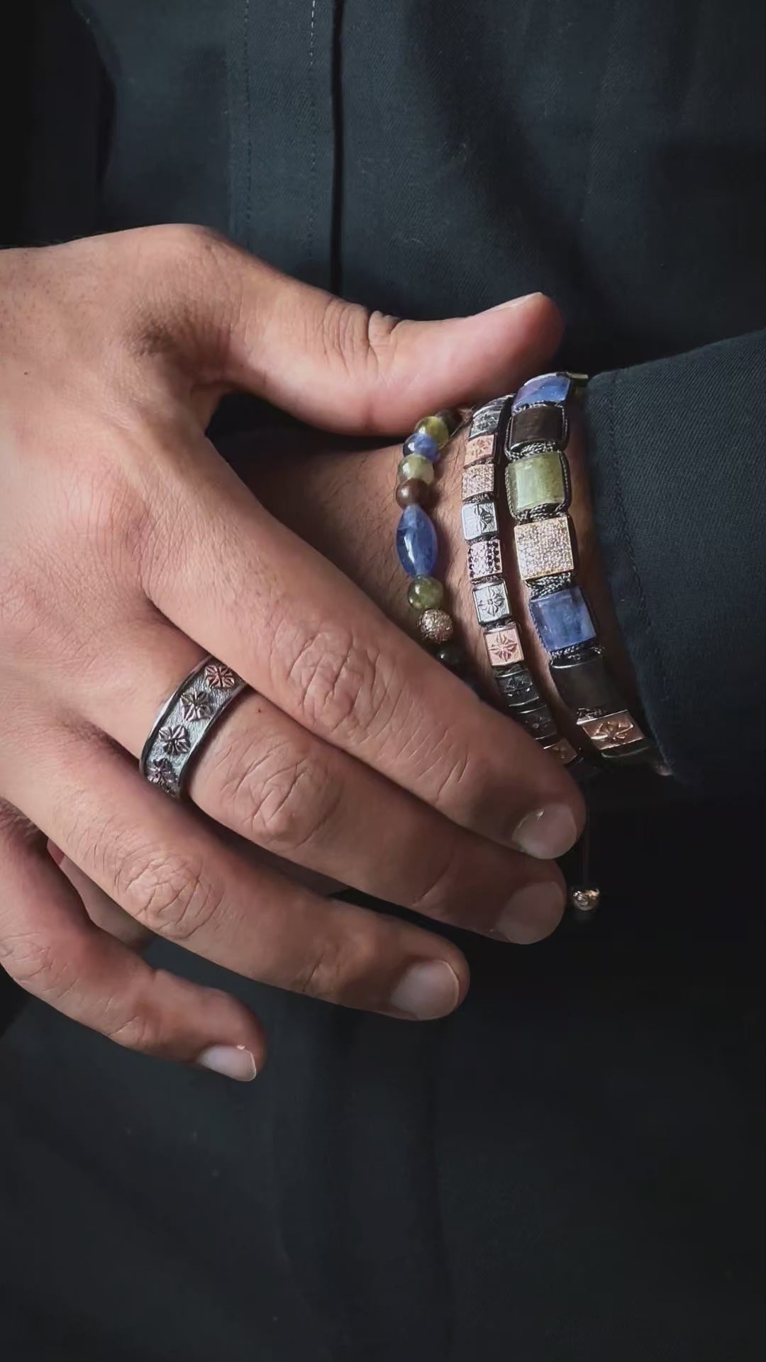 Dusty Brown String: Tied together with a high-quality dusty brown string, this bracelet not only ensures a secure and comfortable fit but also complements the dark and rich colors of the metals and gemstones, enhancing the overall design aesthetic.