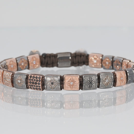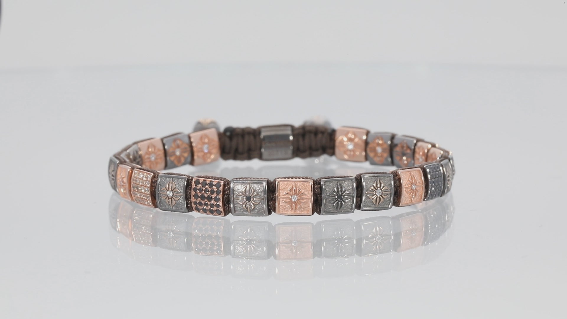 18K Rose & Black Rhodium Plated Rose Gold: This dual-tone setting enhances the visual appeal of the bracelet, with the warm tones of rose gold softening the bold edge of black rhodium plating, offering versatility and a modern flair to your jewelry ensemble.