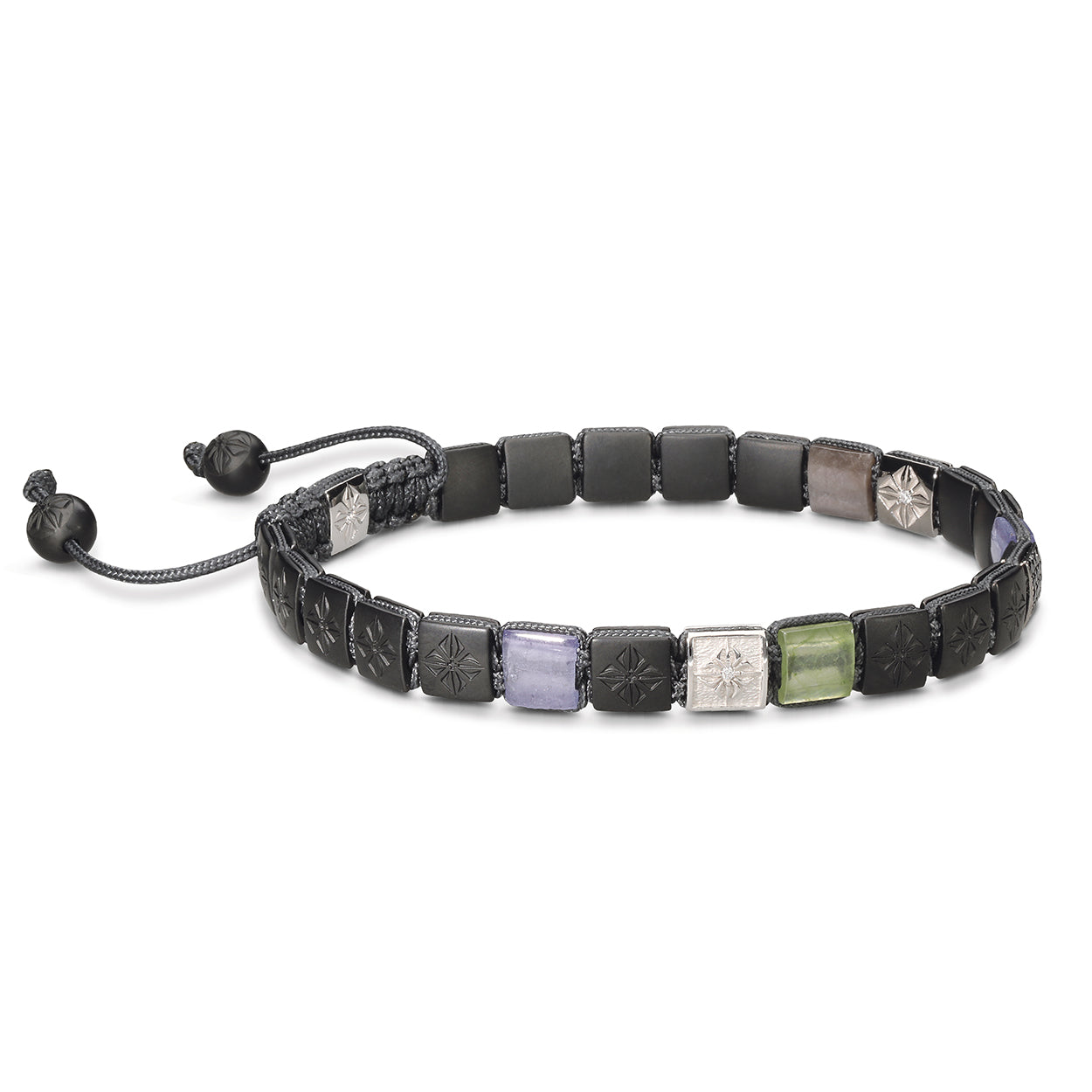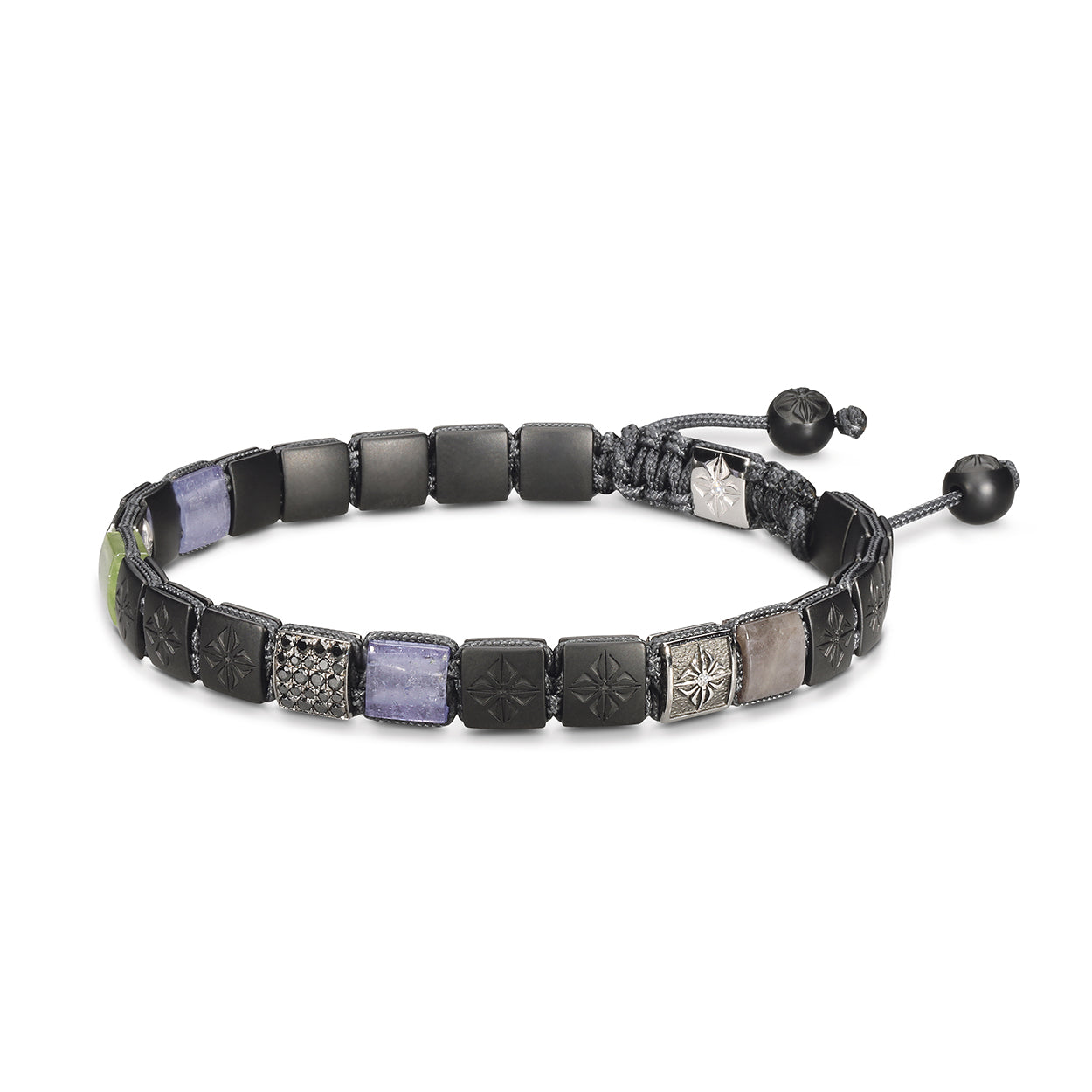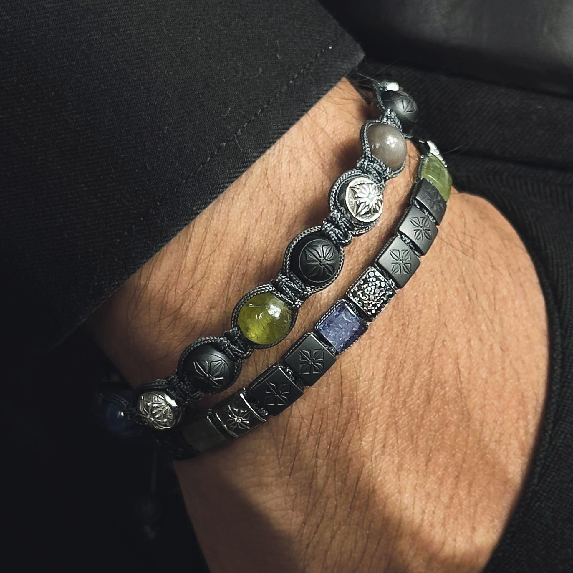 Charcoal Grey String: Finished with a high-quality charcoal grey string, this bracelet ensures a secure and comfortable fit, while its subtle color elegantly complements the rich array of materials used in the bracelet.