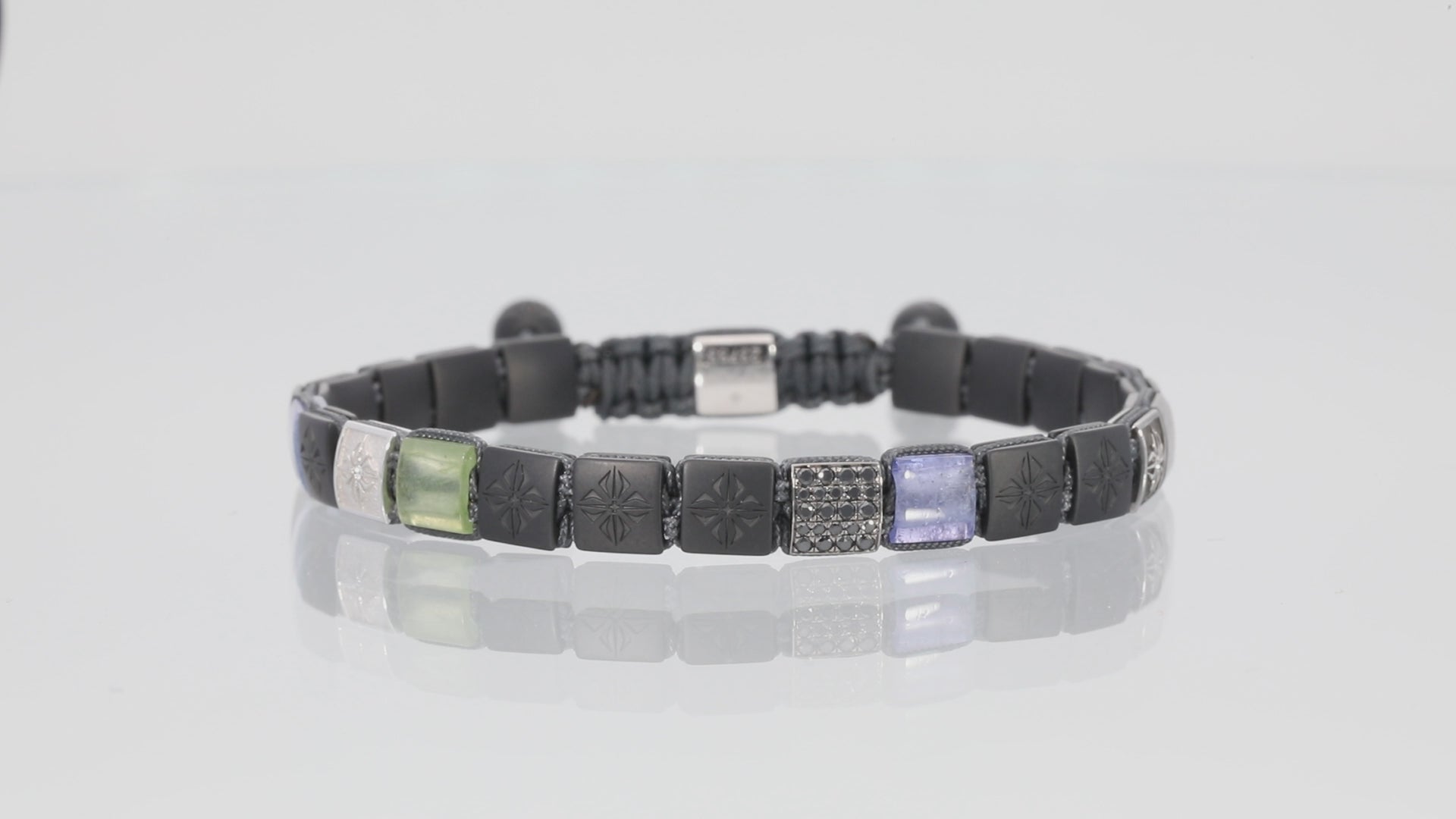 Dive into the exquisite craftsmanship of the 6mm SHAMBALLA® Lock Bracelet, a remarkable assembly of black and G/Vs diamonds, tanzanites, green and grey sapphires, all set against the sleek backdrop of black ceramic and encapsulated within 18K white and rhodium-plated white gold. This bracelet represents a perfect marriage of durability and luxury.