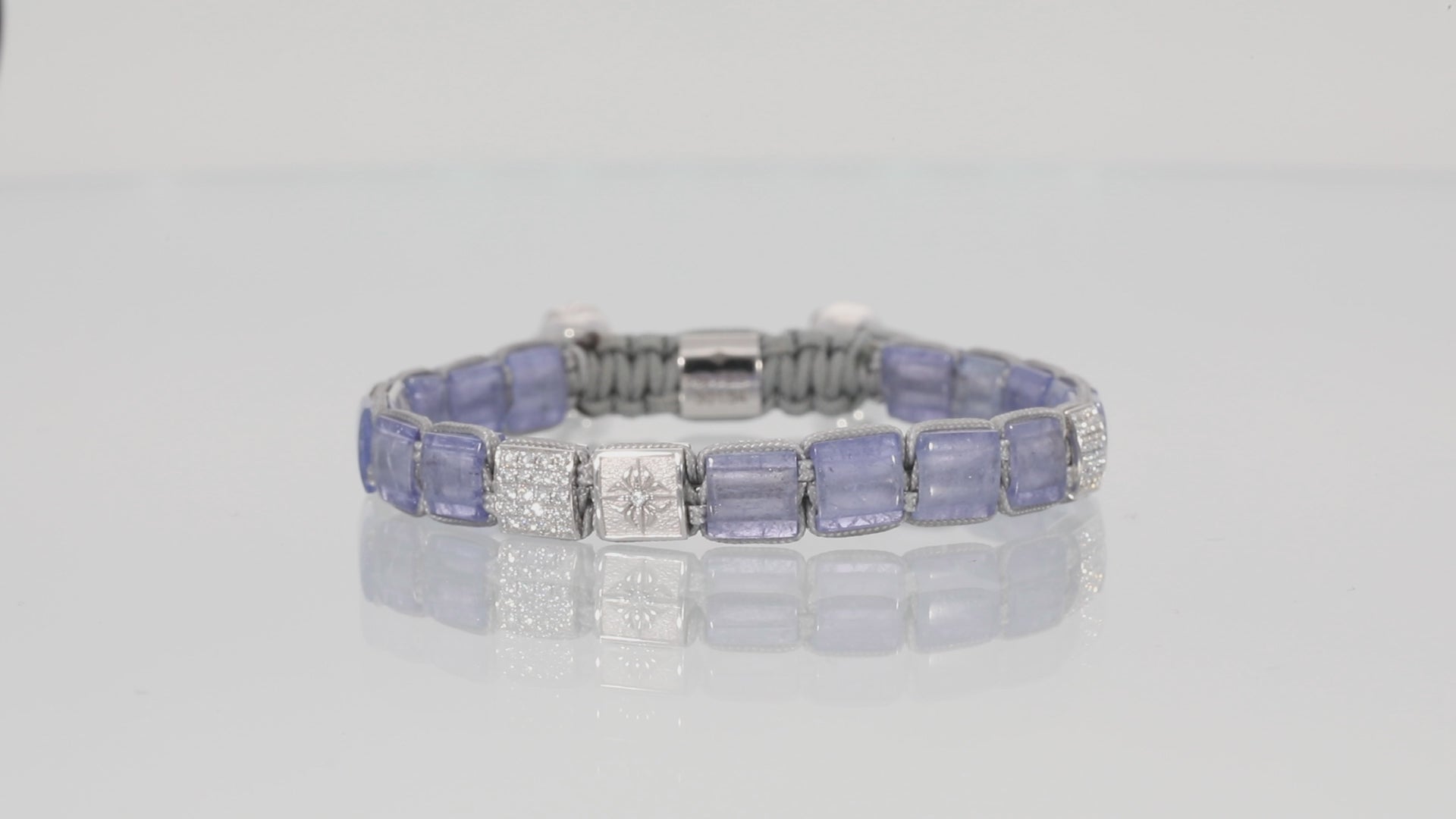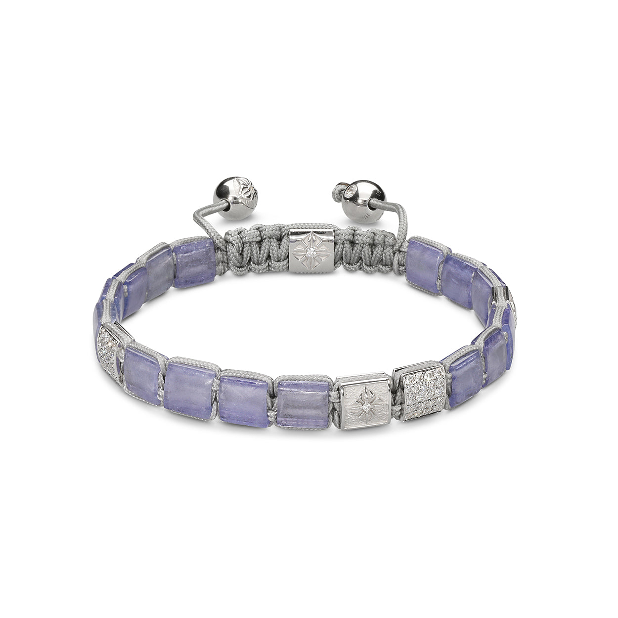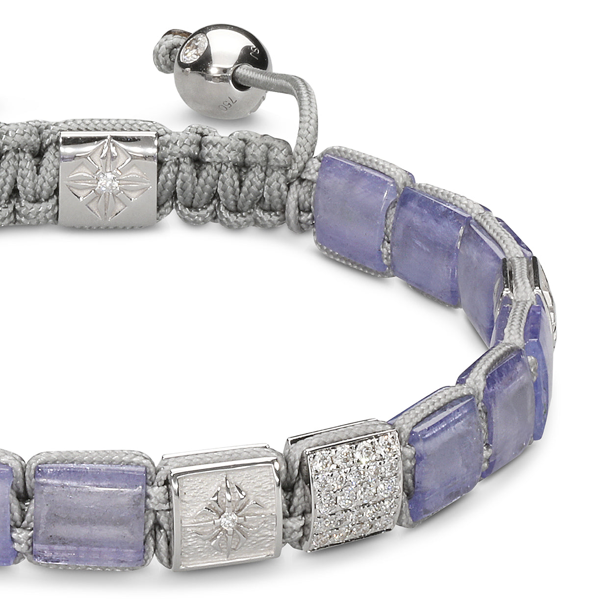 The 6mm SHAMBALLA® Lock Bracelet elegantly combines luxury and craftsmanship, featuring an exquisite arrangement of G/Vs diamonds and tanzanites set in polished 18K white gold. This sophisticated accessory is designed to catch the light and captivate attention, making it a perfect choice for those who appreciate refined elegance in their jewelry.