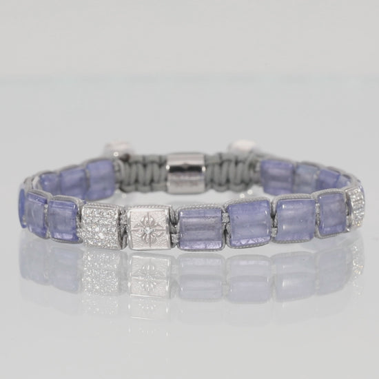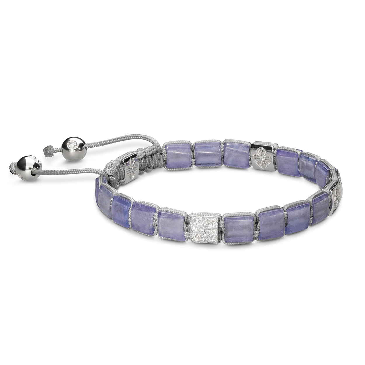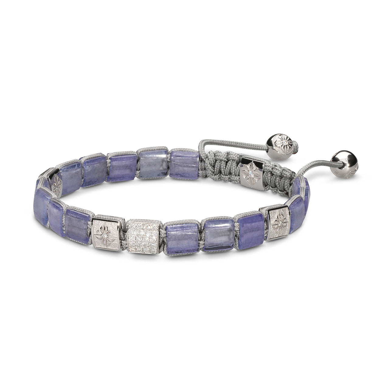 The 6mm SHAMBALLA® Lock Bracelet elegantly combines luxury and craftsmanship, featuring an exquisite arrangement of G/Vs diamonds and tanzanites set in polished 18K white gold. This sophisticated accessory is designed to catch the light and captivate attention, making it a perfect choice for those who appreciate refined elegance in their jewelry.