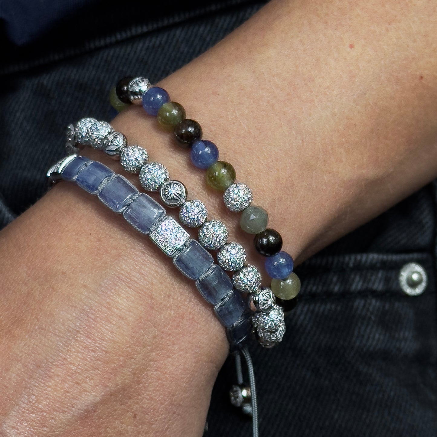 Silver colored String: Finished with a high-quality silver string, this bracelet ensures a comfortable and secure fit while seamlessly blending with the cool tones of the white gold and gemstones for a cohesive and elegant look.