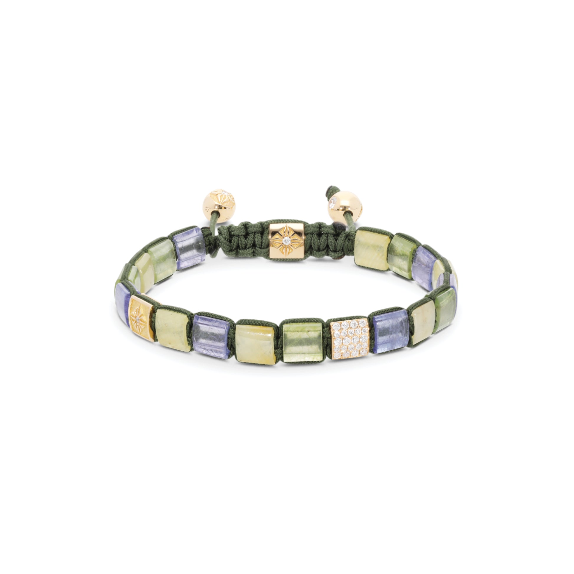 Fresh and luminous, the 6mm SHAMBALLA® Lock Bracelet pairs the sunlit warmth of 18K yellow gold with a vibrant, gemstone-forward palette. The signature lock brings sculptural clarity and diamond-bright sparkle, while green and yellow sapphires play in natural harmony and tanzanites add a cool blue-violet lift. Framed by an Olive string, the silhouette feels modern and grounded—quietly radiant on its own and confident in a stack—fully customizable in Creator.