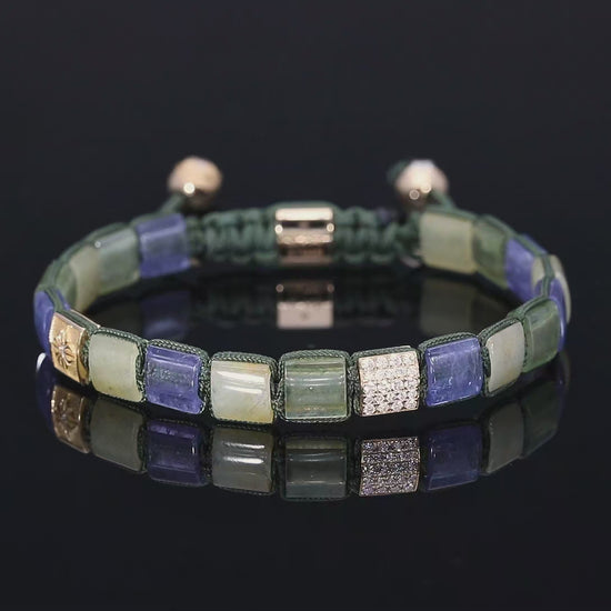 Blue-violet tanzanites provide a refreshing counterpoint, heightening dimension and balancing the bracelet’s sun-warm palette with cool, contemporary energy.