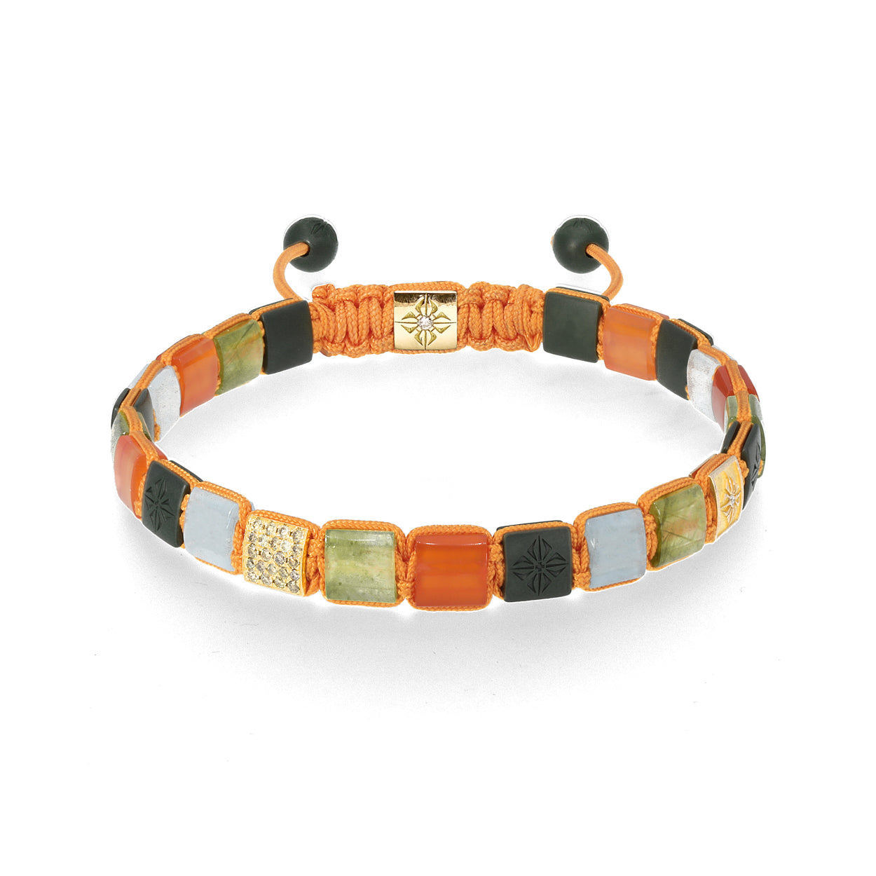 Brown & G/Vs Diamonds, Green Sapphires, Milky Aquamarines, Carnelians, Green Matte Ceramics, 18K Yellow Gold.