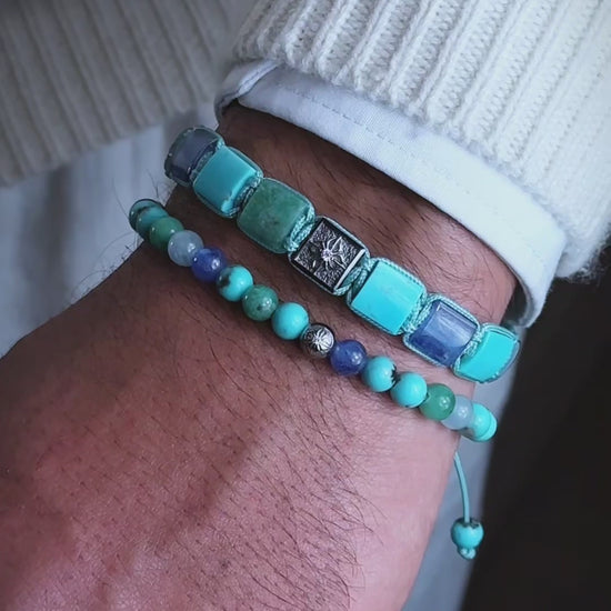 Turquoise String – The carefully woven turquoise string complements the vibrant gemstones, adding both comfort and an extra layer of elegance to the bracelet.