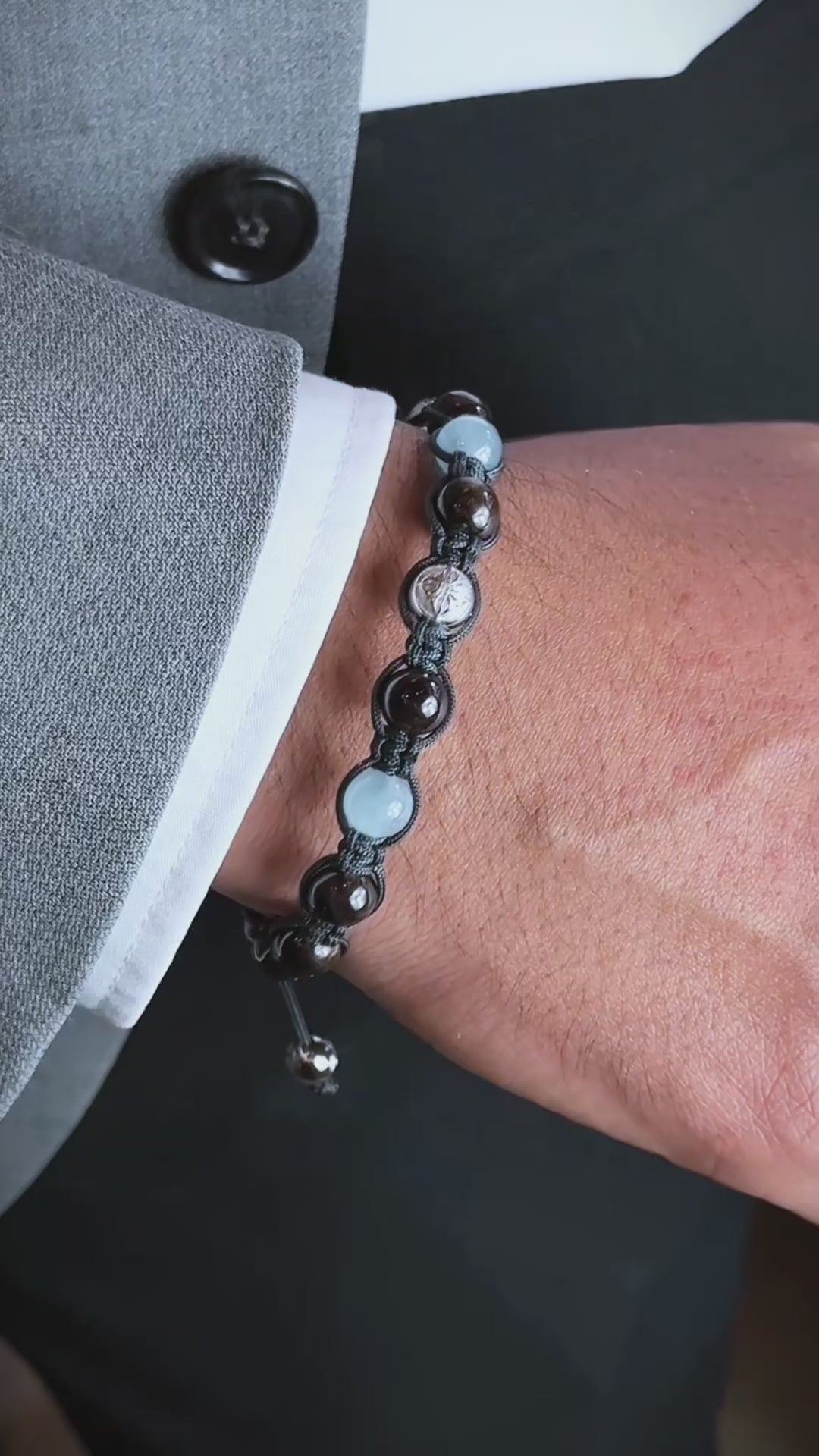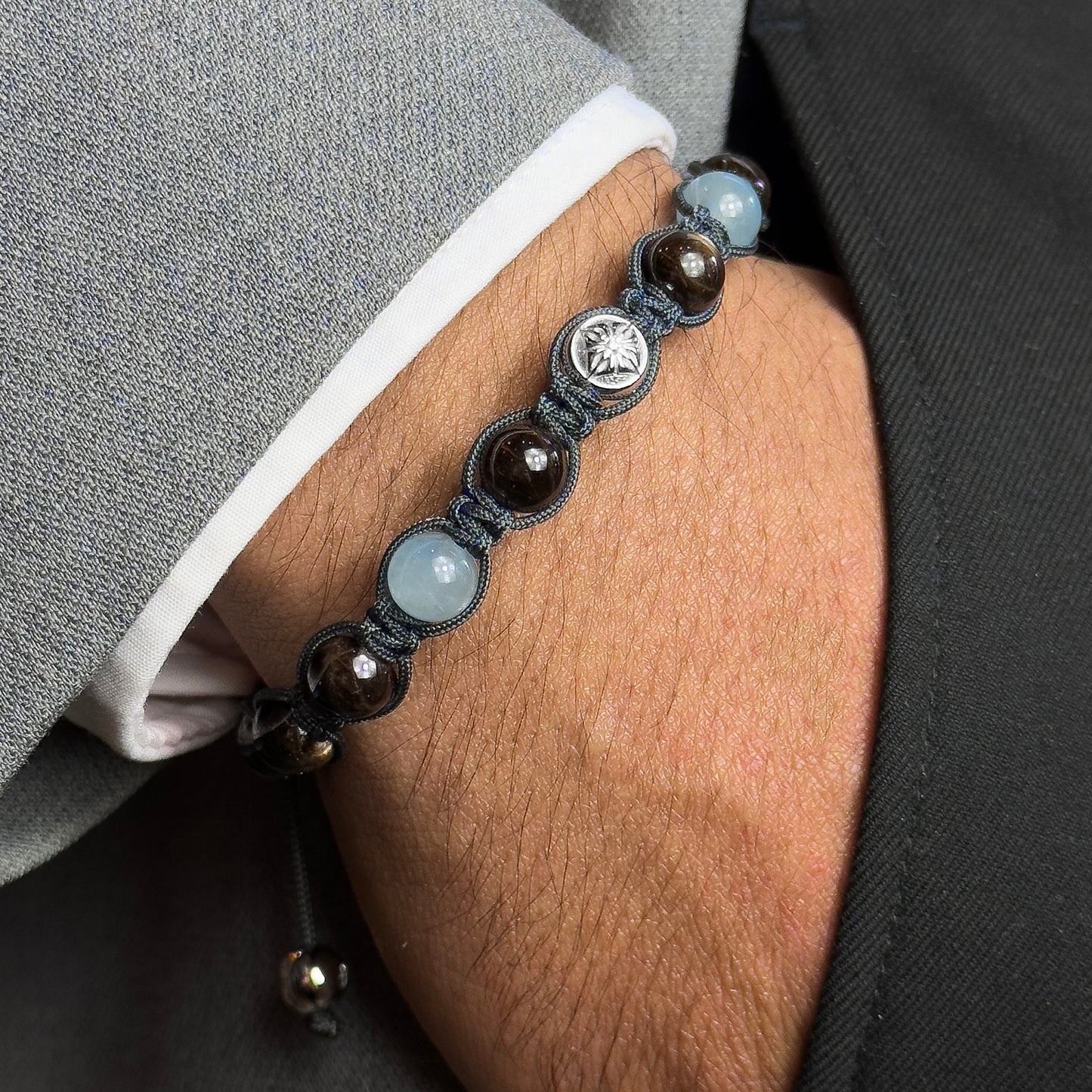 Charcoal Grey String – The carefully woven charcoal grey string complements the gemstones, creating a sleek, stylish, and comfortable design.