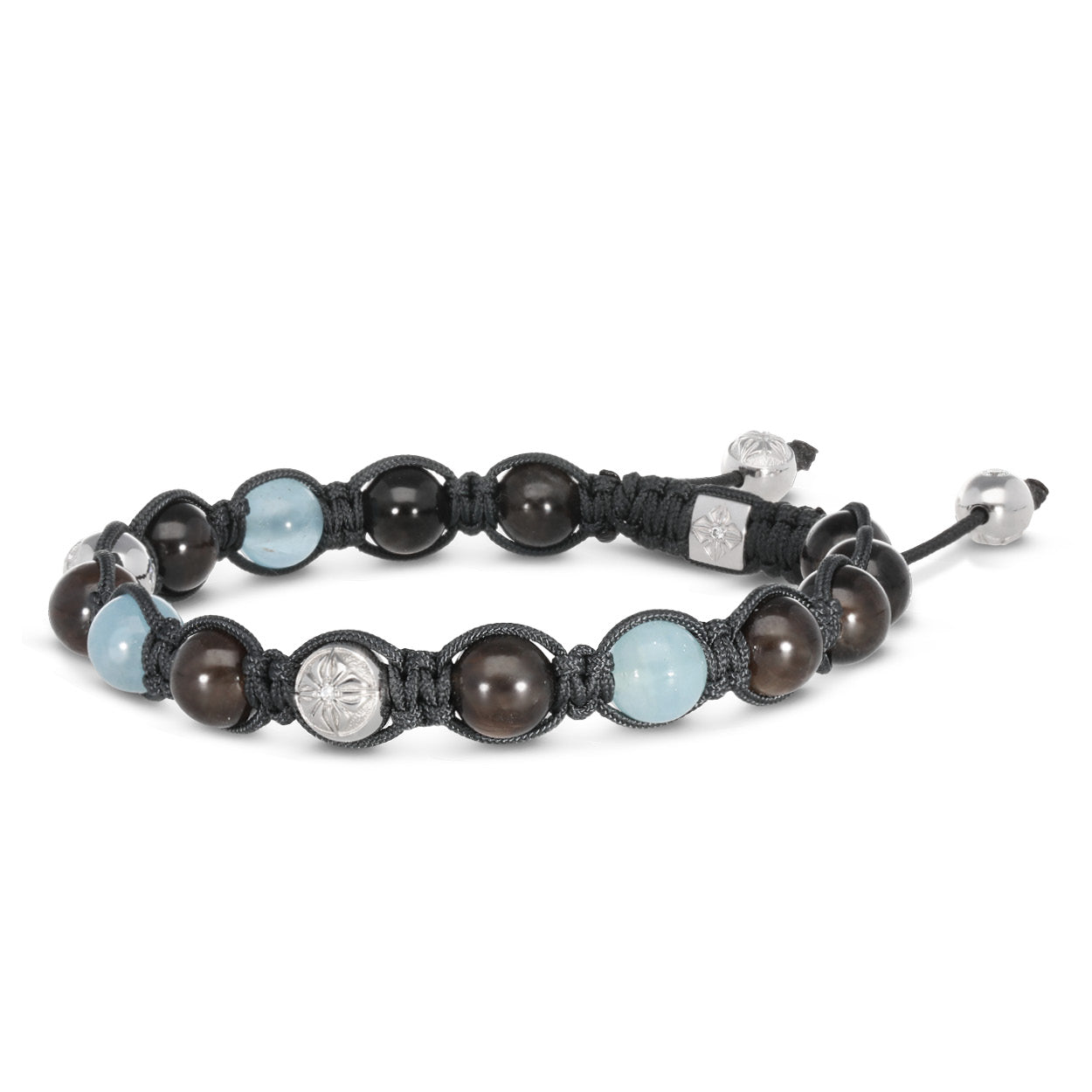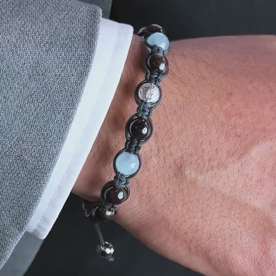 Milky Aquamarines – Soft and ethereal aquamarines that offer a calming and luminous quality to the bracelet.