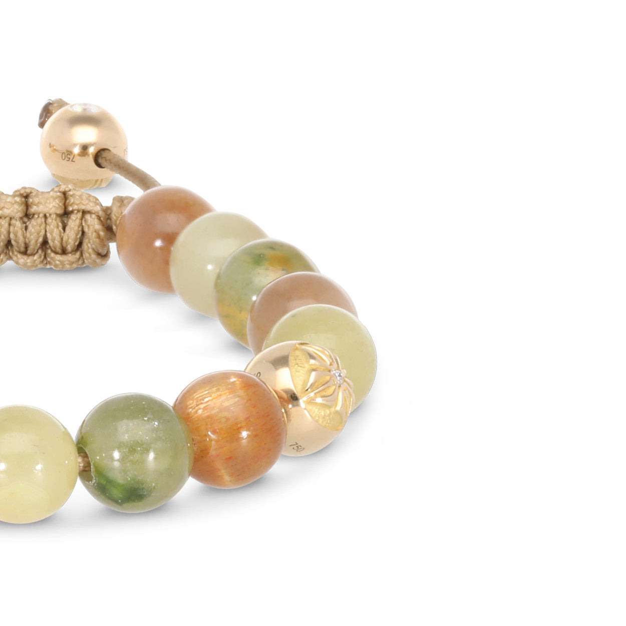 Beige String Color – The elegantly woven string in beige provides a subtle, sophisticated contrast to the rich gemstones and gold, ensuring a comfortable and secure fit.