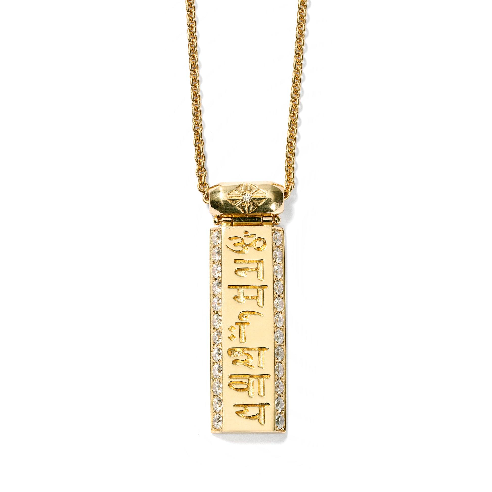 18K Yellow Gold and G/VS Diamonds Pavè Gold Bar pendant, size Small.