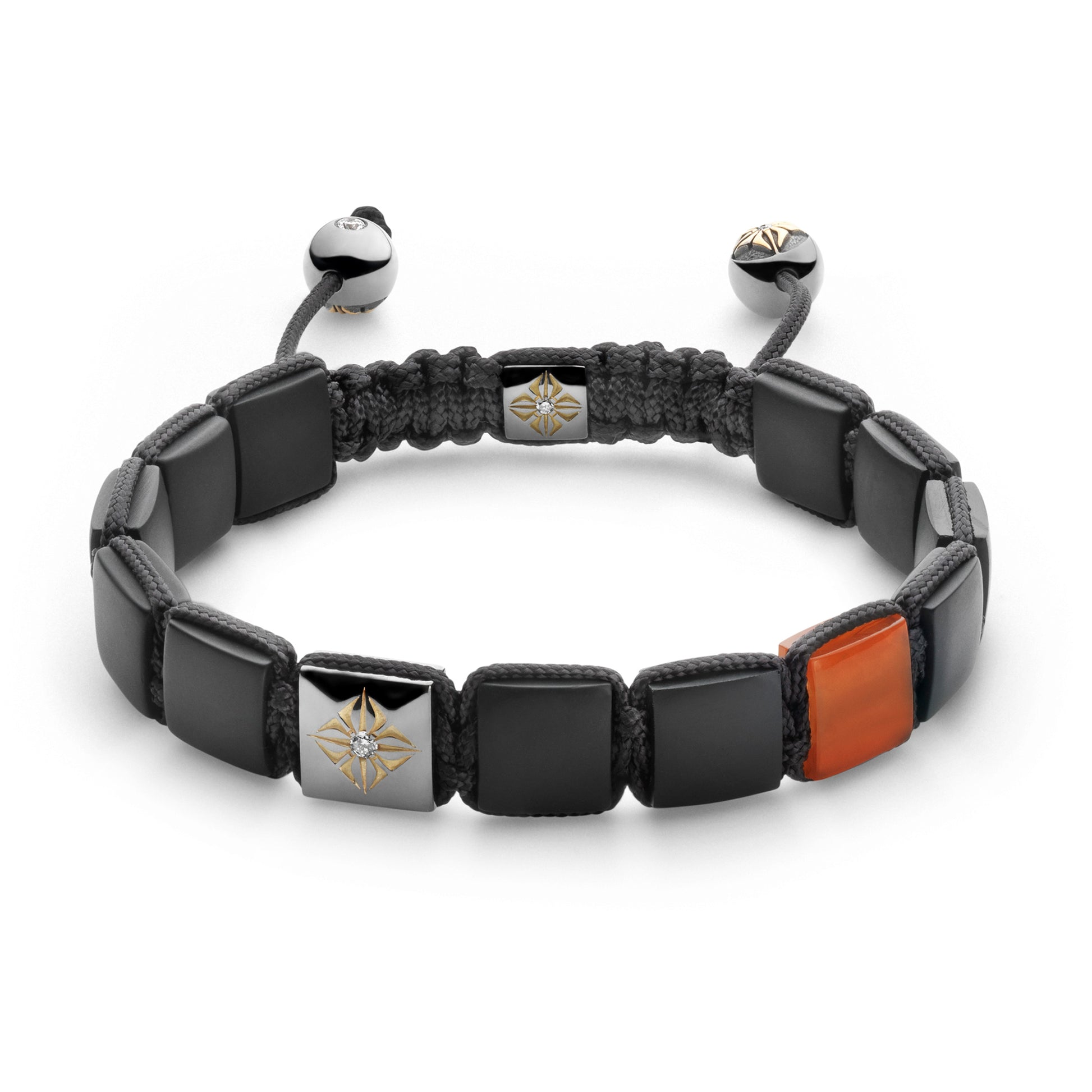 Discover the timeless elegance of the SHAMBALLA® bracelet, a symbol of personal exploration and refined luxury. This exquisite piece combines G/VS diamonds, carnelian, black matte ceramic, and 18K black rhodinated yellow gold to create a stunning accessory that captures your unique journey and life moments.