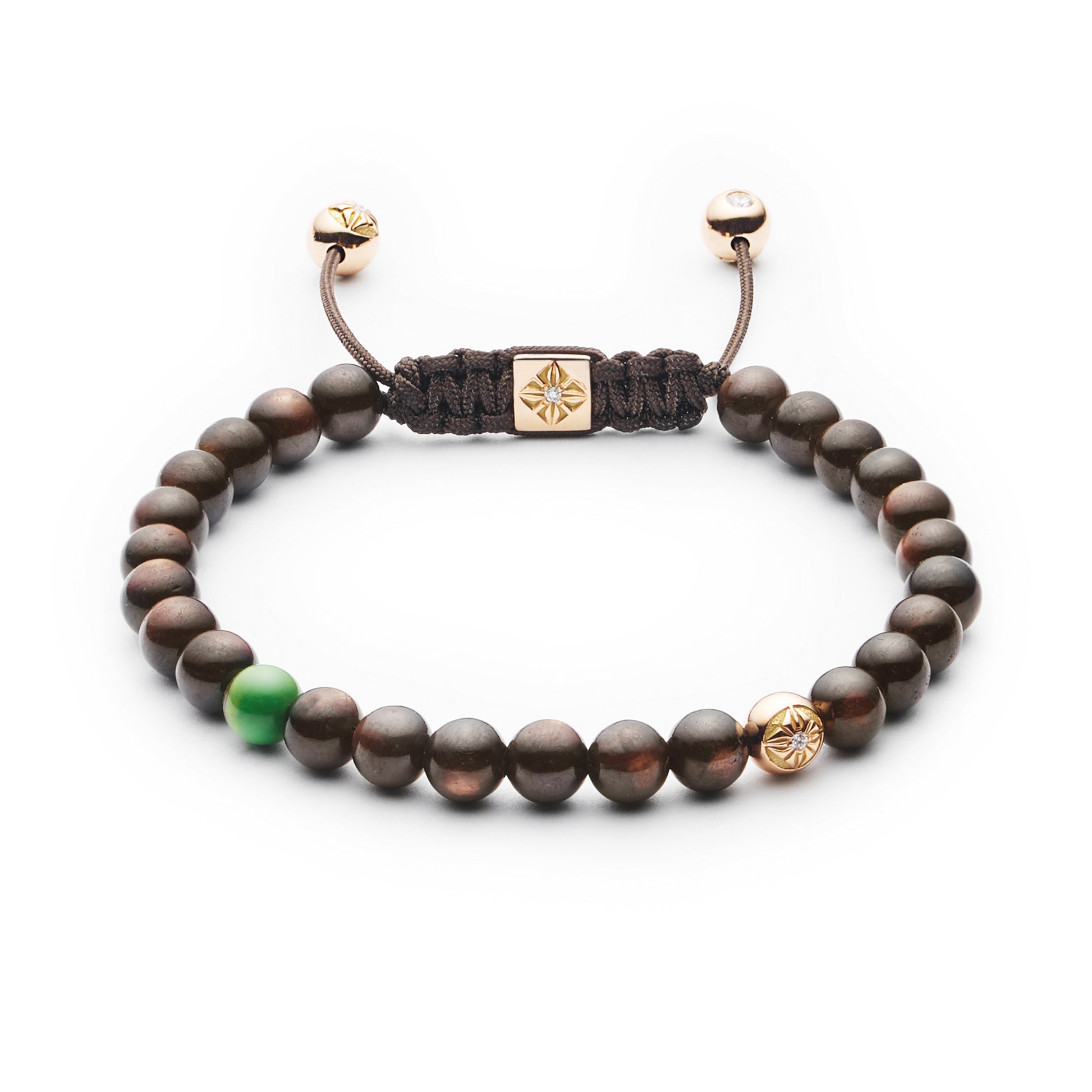 Just like the strong and tall trees in the forest, this design balances between the intensity of the Green Turquoise mixed with the earthy Brown Sapphires and Yellow Gold. Every component as well as the string color can be changed and customized in Creator. Materials: G/Vs Diamonds, Green Turquoise, Brown Sapphires and 18K Yellow Gold