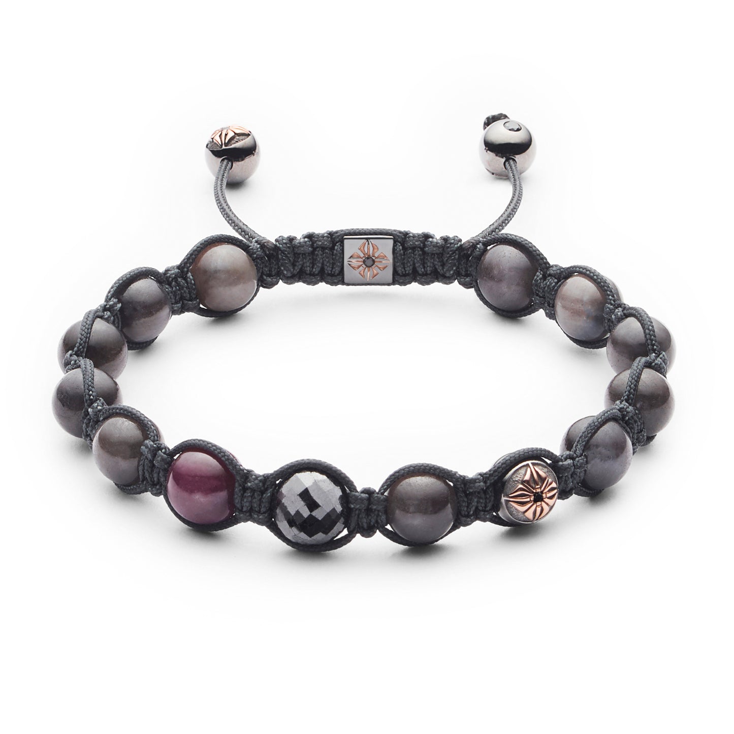 Charcoal Grey String: Finished with a durable charcoal grey string, the bracelet combines practicality with style, ensuring a comfortable fit while beautifully highlighting its luxurious materials.