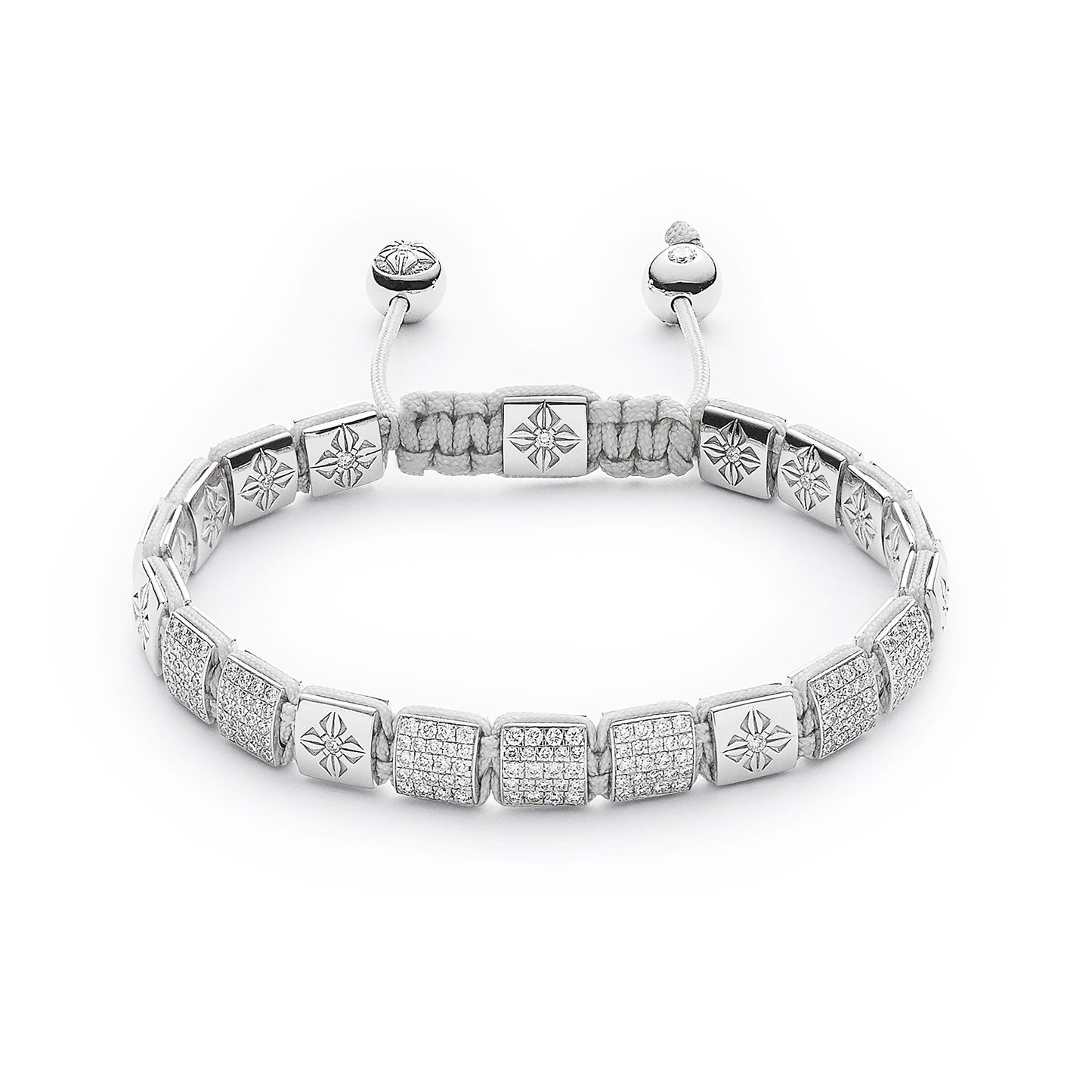 Dusty white string: Secured with a durable dusty white string, the bracelet ensures a comfortable and secure fit, seamlessly integrating luxury with everyday wearability.