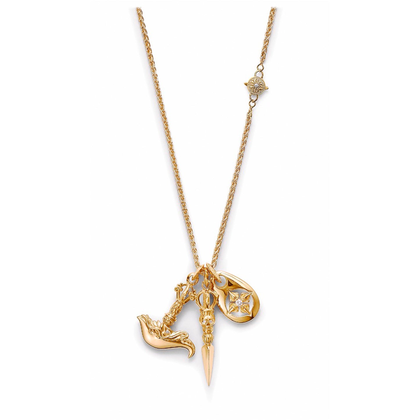 SHAMBALLA® Ultimate Protection Necklace is one of the most sophisticated creations ever made in the house of SHAMBALLA JEWELS. A symbolic pendant trio of Laughing Skull Phurpa, Kartika Dragon and the STAR OF SHAMBALLA Dogtag represent protection and bravery.
