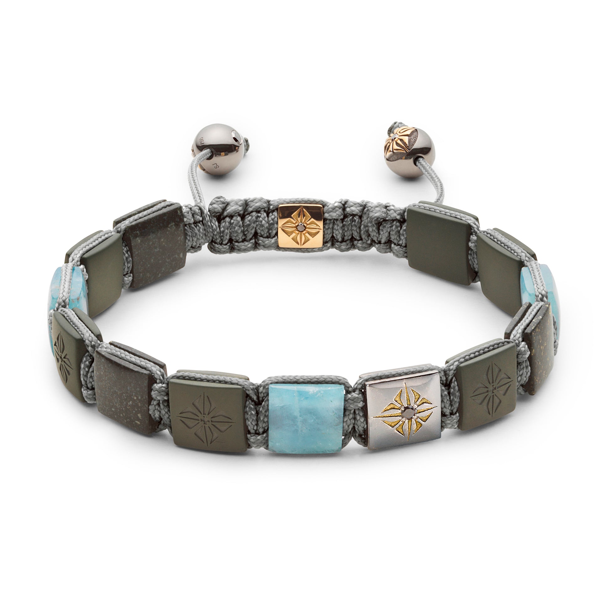 Grey String: Finished with a grey string, the bracelet offers a sophisticated backdrop that complements the dark hues of the diamonds, jades, ceramics, and gold. The string is meticulously woven for comfort and durability, ensuring a perfect fit and stylish appearance.
