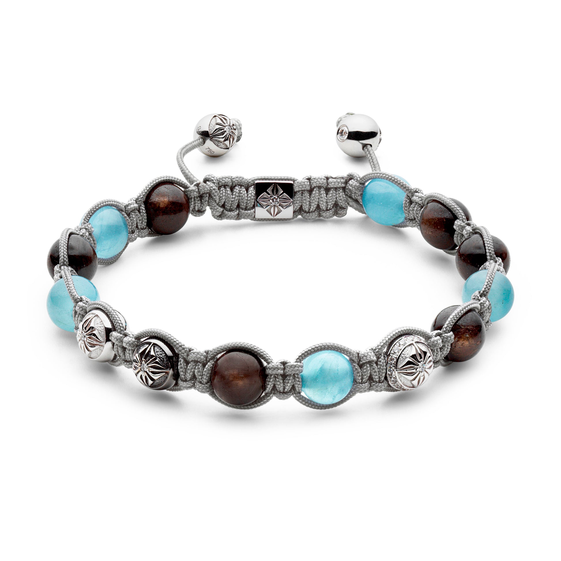 Elevate your style with the 8mm Braided Bracelet from Shamballa Jewels, a sophisticated blend of luxurious materials and timeless craftsmanship. This exquisite bracelet features G/VS diamonds, aquamarine, brown sapphire, and a combination of 18K black rhodinated gold and white gold. It is a captivating accessory that adds elegance and sophistication to any ensemble.