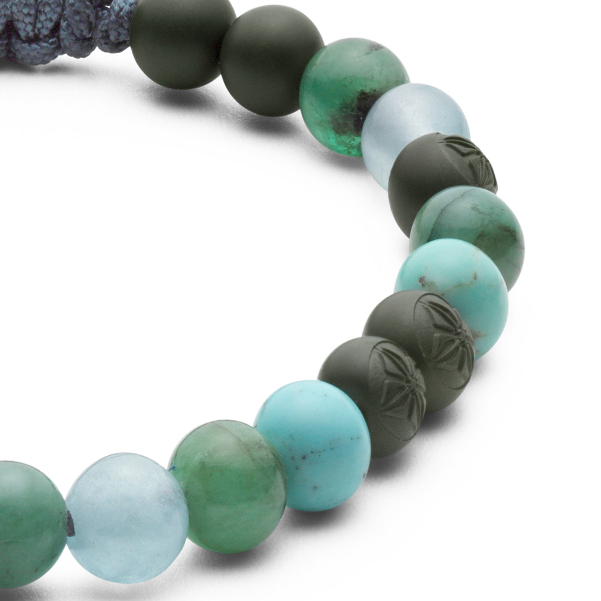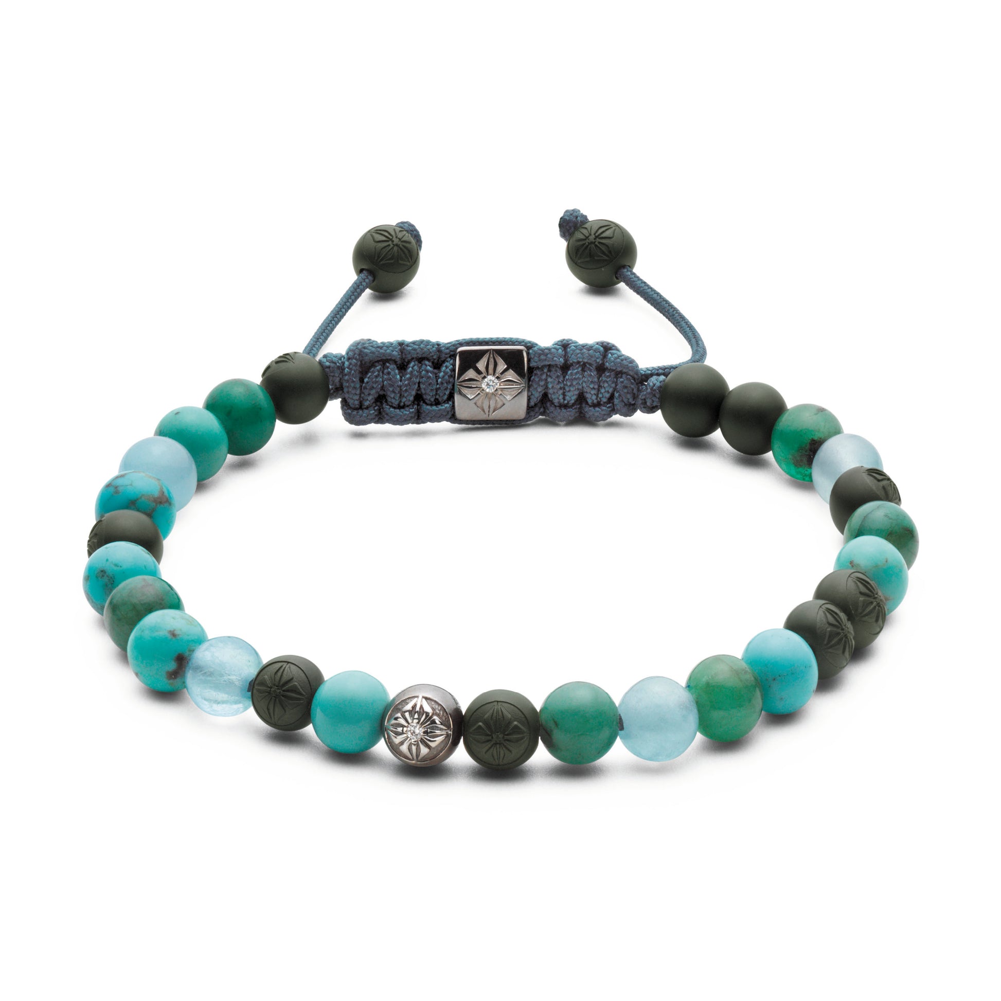 This SHAMBALLA® 6mm Non-Braided Bracelet contains precious gemstones inspired by nature's color palette. White Diamonds are precisely set into 18K Black Rhodium-plated White Gold, matched side by side with Emeralds, Milky Aquamarines and Turquoises.