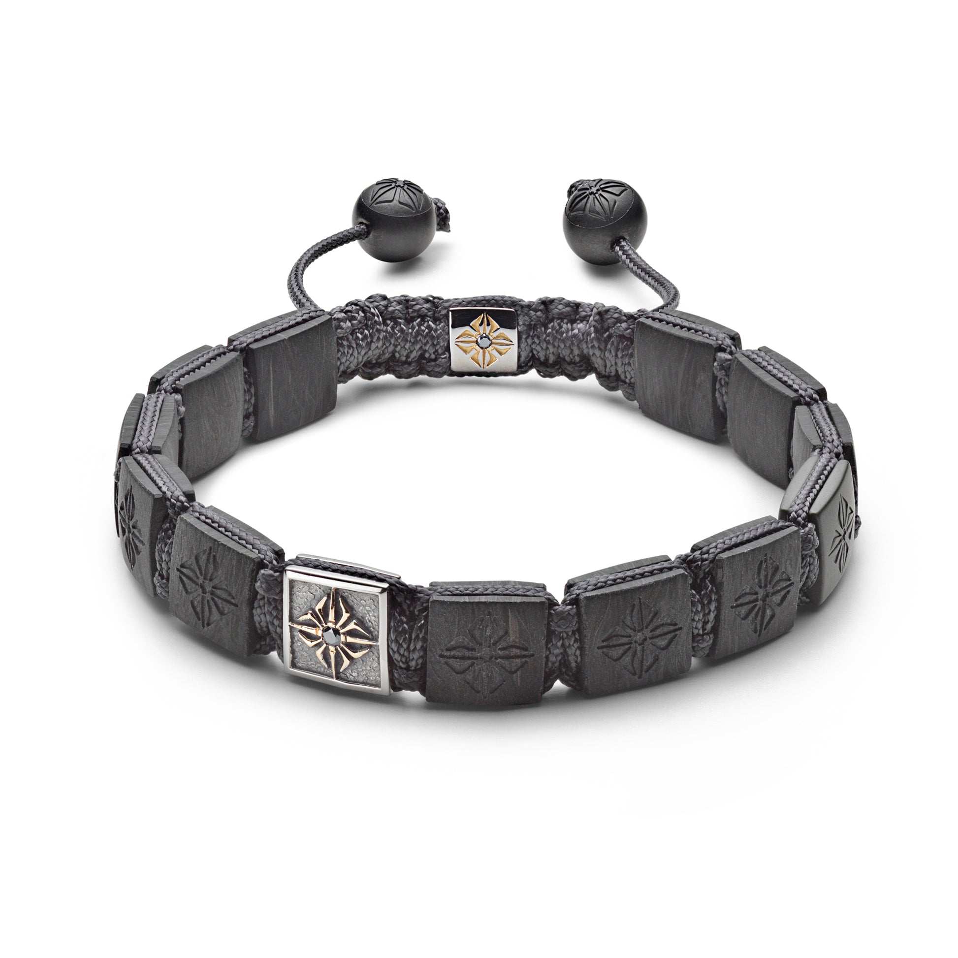 Charcoal Grey String: Finished with a charcoal grey string, the bracelet offers a refined backdrop that complements the dark hues of the diamonds, ceramics, and gold. The string is meticulously woven for comfort and durability, ensuring a perfect fit and stylish appearance.