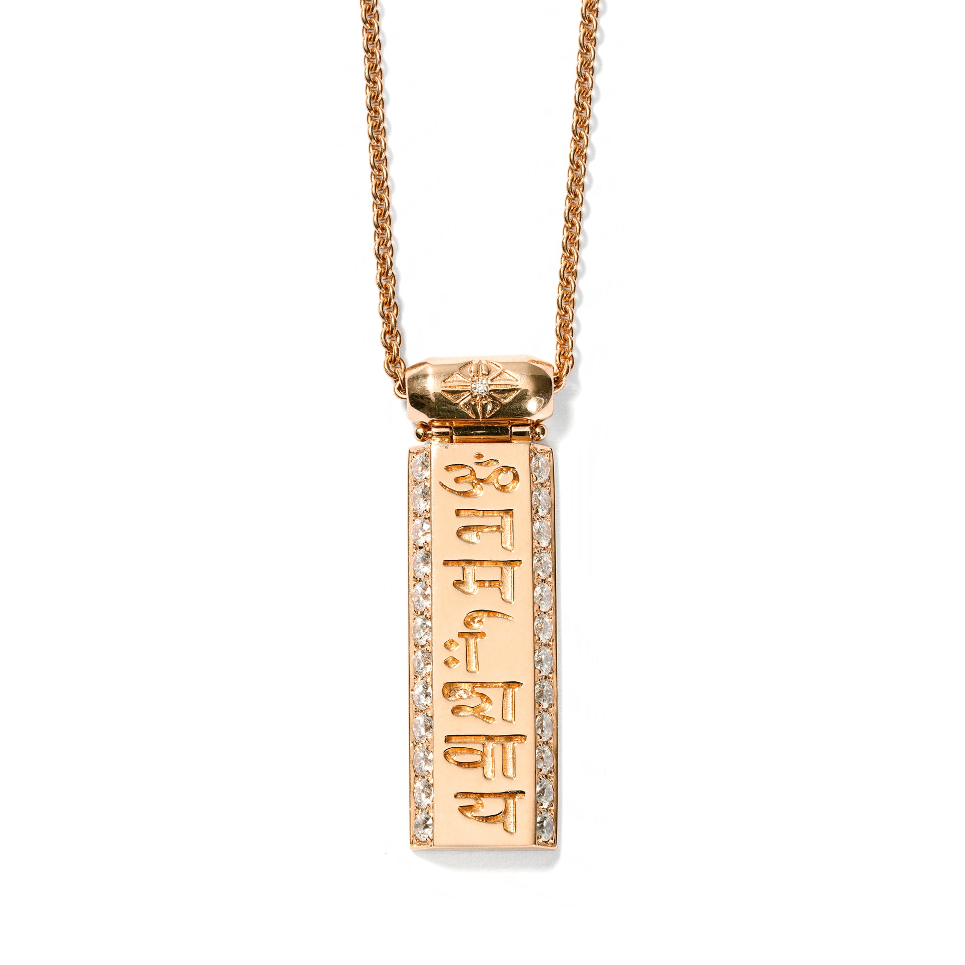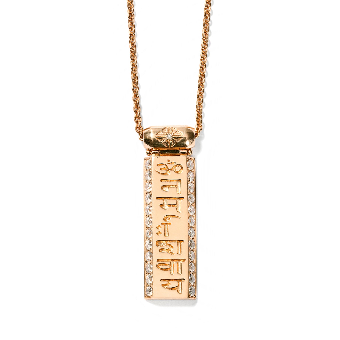 18K Rose Gold and G/VS Diamonds Pavè Gold Bar pendant, size Small.