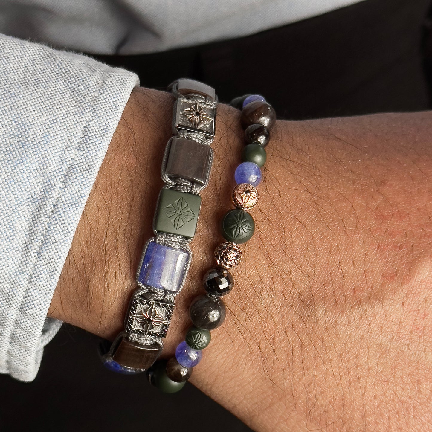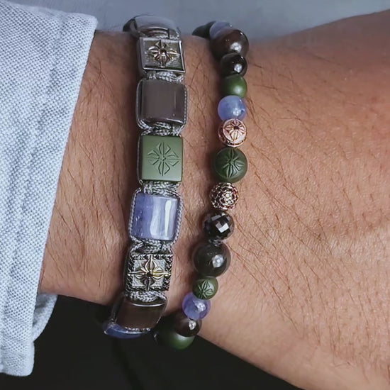 The Multisize SHAMBALLA® Non-Braided Bracelet features a luxurious mix of Black Solid Faceted Diamonds, Black Diamonds, Tanzanites, Brown & Grey Sapphires, and Green Matte Ceramic, set in 18K Rose & Black Rhodium Plated Rose Gold. Finished with a Stone Grey string, this bracelet combines elegance with boldness, making it a standout accessory for those who appreciate fine craftsmanship and distinctive design.