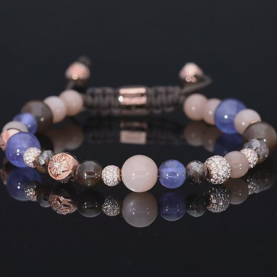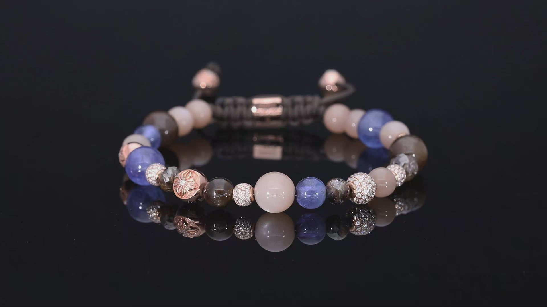 A refined play of scale and color, the Multisize SHAMBALLA® Non-Braided Bracelet pairs the warmth of 18K rose gold with a nuanced spectrum of gemstones. Alternating bead sizes create a rhythmic silhouette that sits sleekly on the wrist, while the Dusty Brown string grounds the composition with an understated, earthy tone. Cognac-hued brown diamonds and sapphires glow against crisp G/Vs diamonds, with tanzanites lending cool blue-violet lift and peach moonstones adding a soft, luminous sheen. Quietly radiant on its own and striking in a stack.