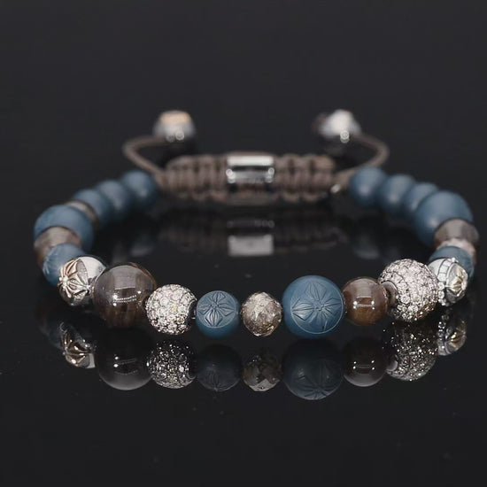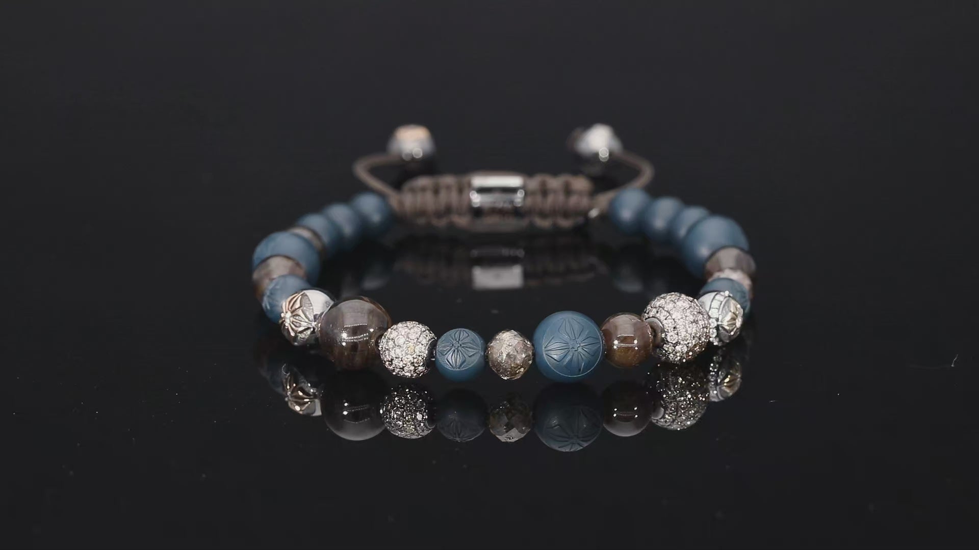 A study in warm glow and cool restraint, the Multisize SHAMBALLA® Non-Braided Bracelet pairs rose gold veiled in black rhodium with a palette that moves from cognac and chocolate to inky shadow and soft blue. Alternating bead sizes create a rhythmic, contemporary silhouette that sits sleekly on the wrist, while the Dusty Brown string grounds the composition with an understated, earthy tone. Refined on its own and striking in a stack.