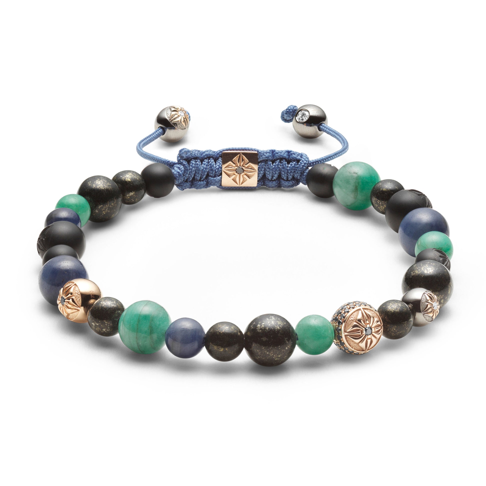 Black Diamonds, Emeralds, Blue Sapphires, Black Jades, Black Matte Ceramics, 18K Rose & Black Rhodium Plated Rose Gold.