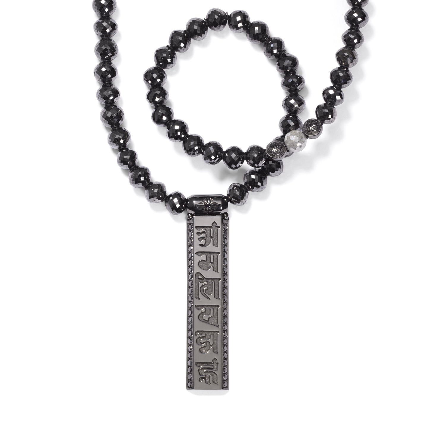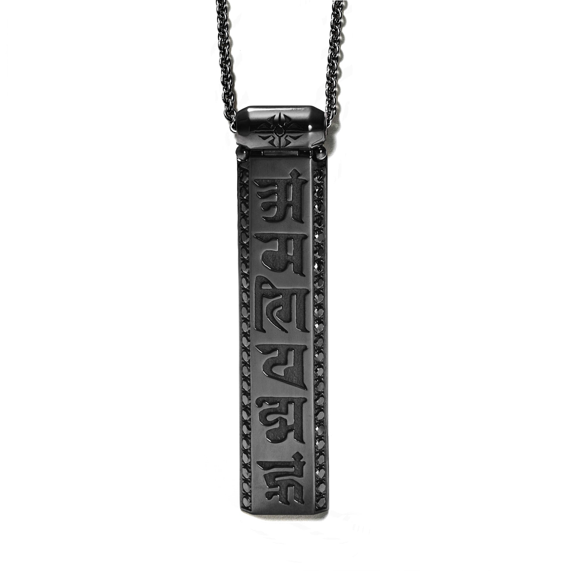 18K White Gold Black Rhodinated and Black Diamonds Pavè Gold Bar pendant, size Large.