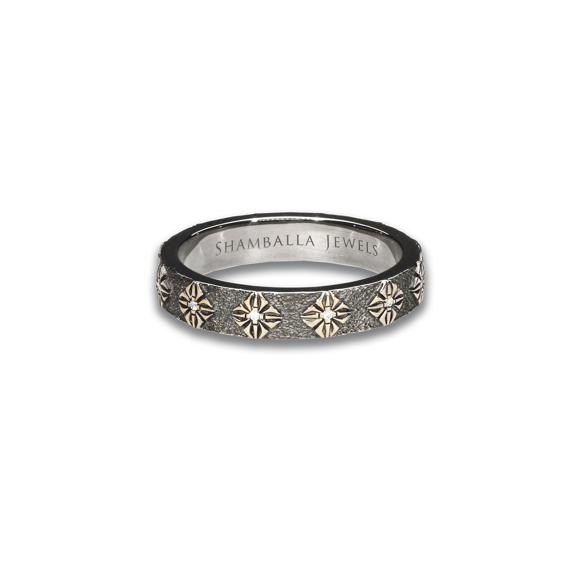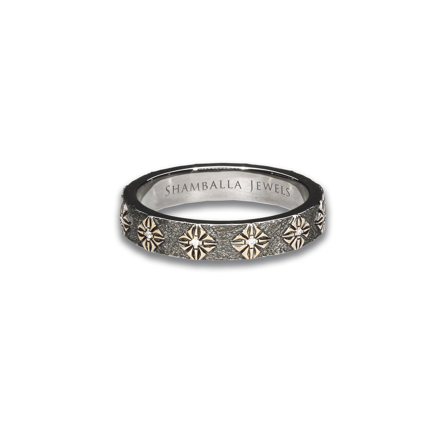 Introducing the STAR OF SHAMBALLA® Ring, a stunning creation that epitomizes the union of luxury and modern design. This exquisite piece is meticulously set with G/Vs diamonds that gleam with unmatched brilliance, all encased in the dramatic elegance of 18K black rhodium-plated yellow gold.