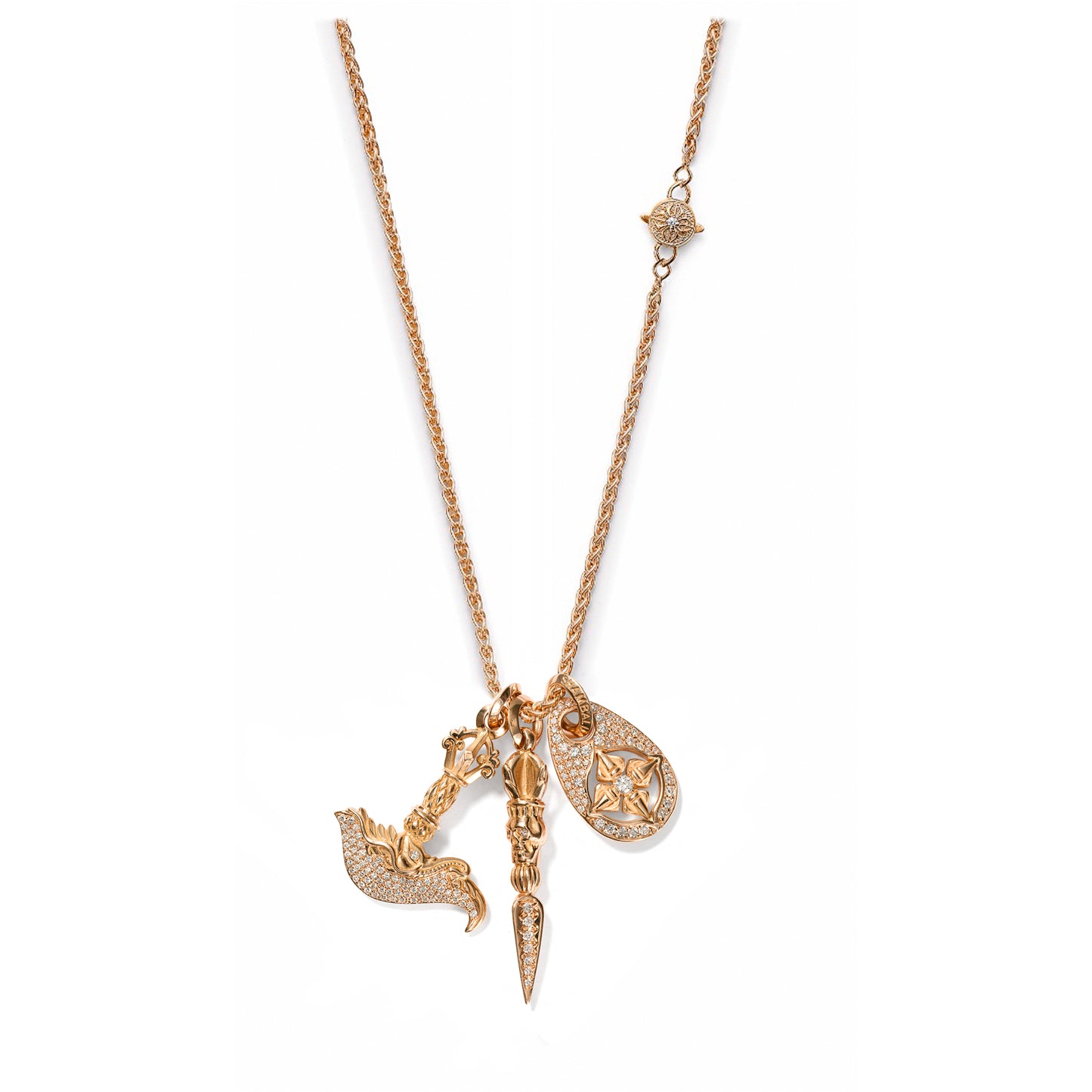 SHAMBALLA® Ultimate Protection Pavè Necklace is one of the most sophisticated creations ever made in the house of SHAMBALLA JEWELS. A symbolic pendant trio of Laughing Skull Phurpa, Kartika Dragon and the STAR OF SHAMBALLA Dogtag represent protection and bravery.